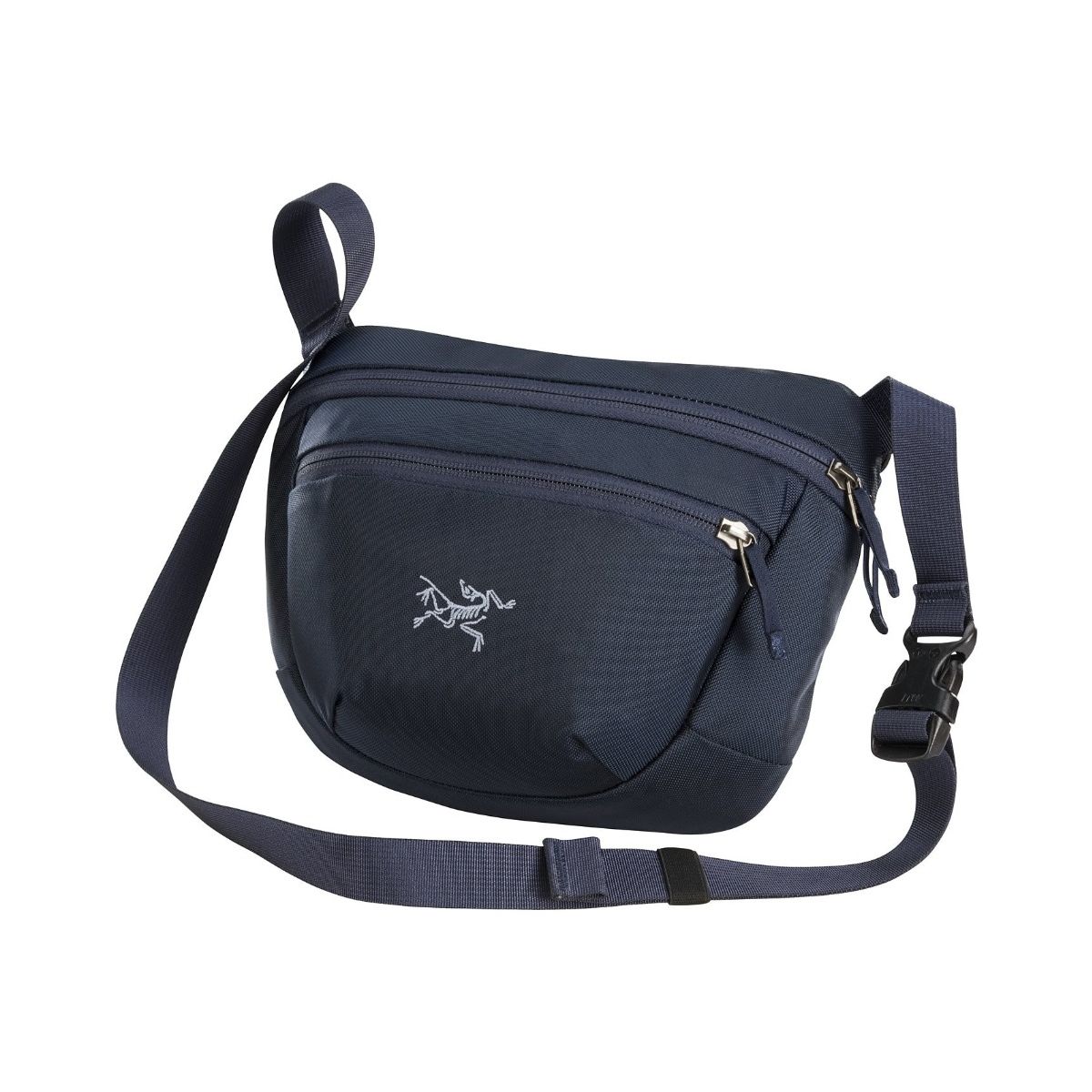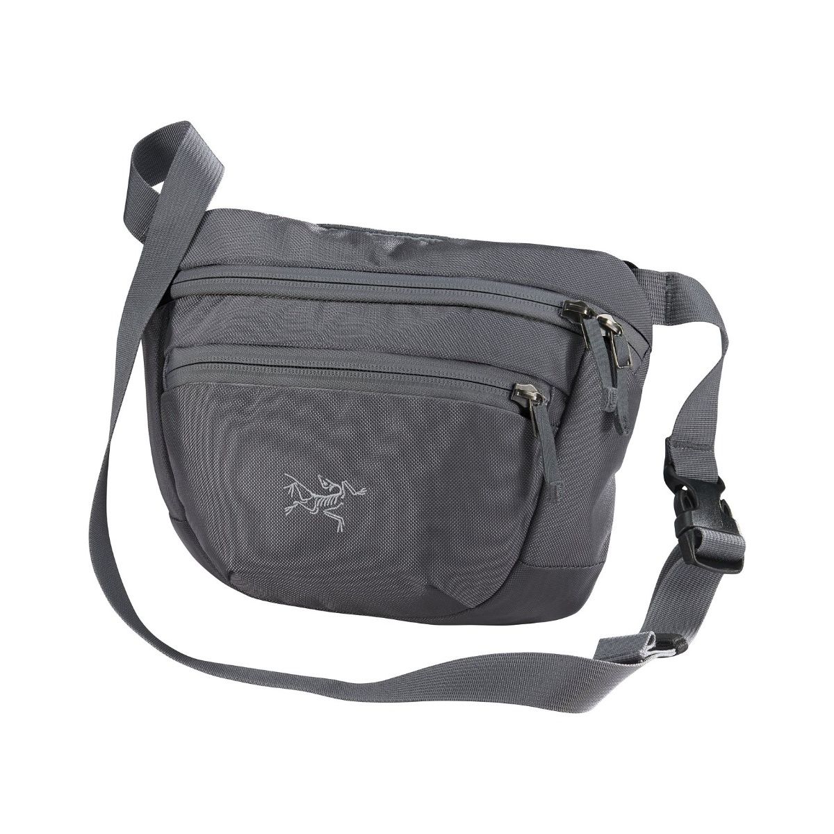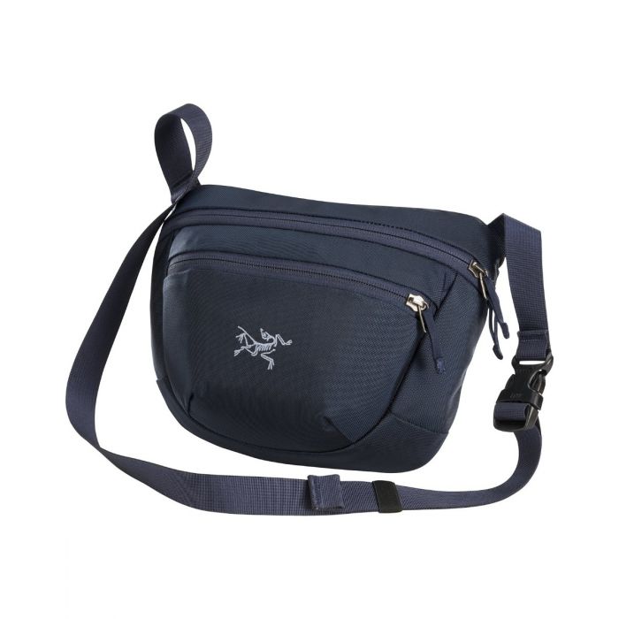 Funkcjonalna, pojemna saszetka podróżna Arc'teryx Maka 2, z dwoma kieszeniami zapinanymi na suwak.