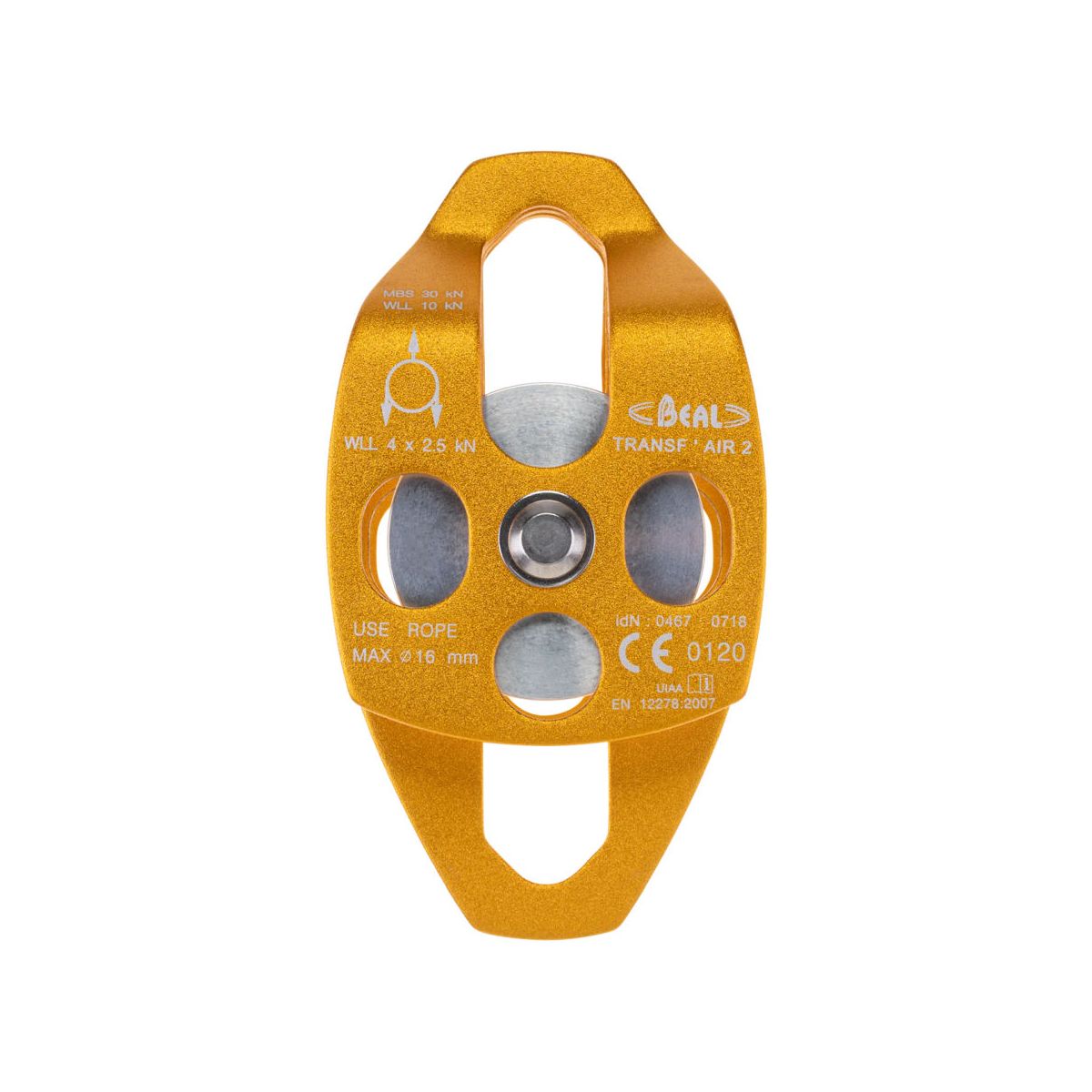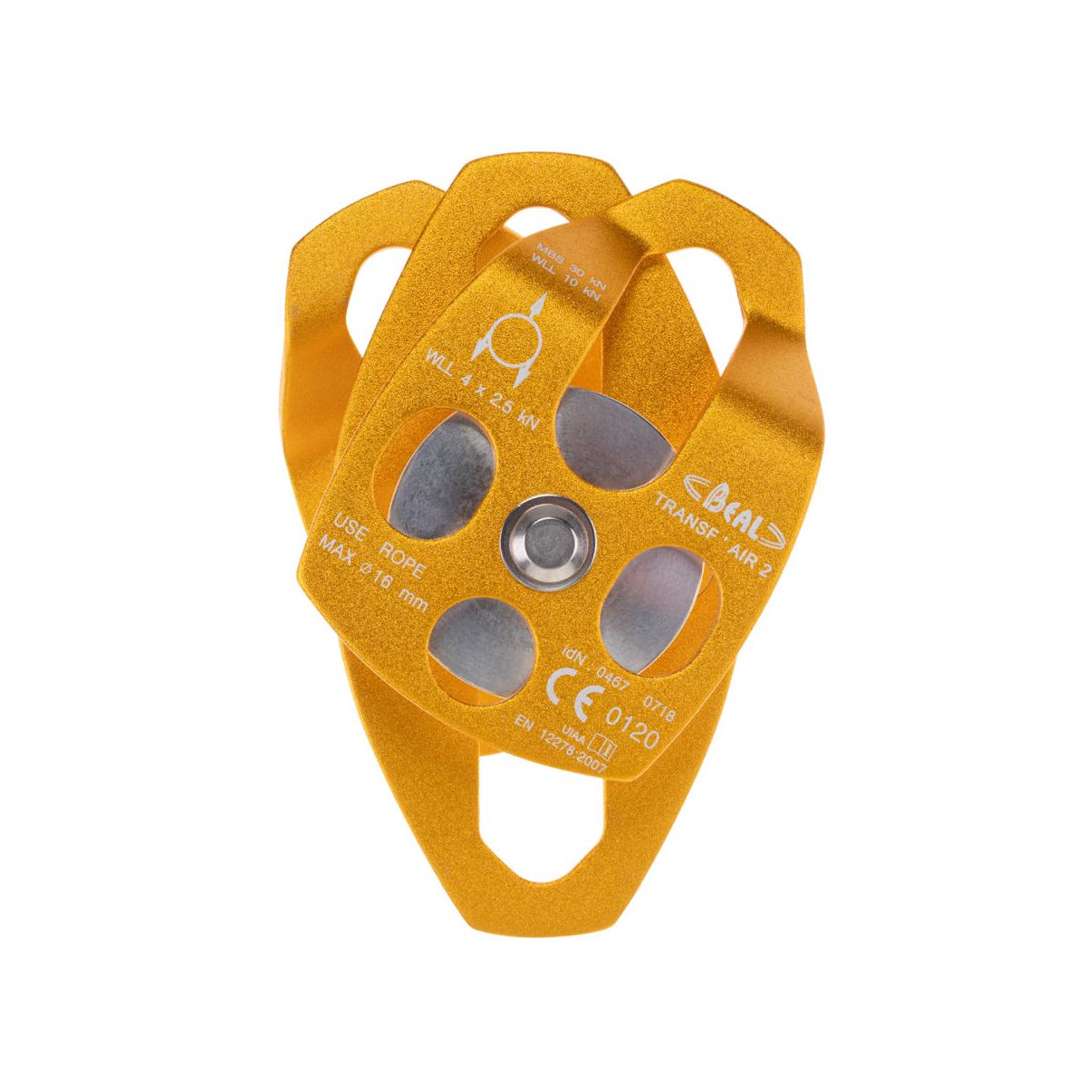 BEAL TRANSF'AIR 2 to wytrzymały bloczek podwójny zaprojektowany do pracy z dużymi obciążeniami i linami o dużej średnicy. Dzięki podwójnym kółkom i ruchomym okładzinom bocznym zapewnia maksymalną wszechstronność – idealnie sprawdza się w systemach wyciągowych, ratowniczych oraz transportowych.