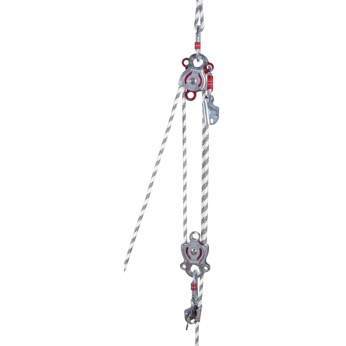 Charakteryzuje się dużymi rolkami, głównym otworem mocującym, który pomieści trzy karabinki oraz dwoma bocznymi otworami po bokach i jednym mocującym do liny.