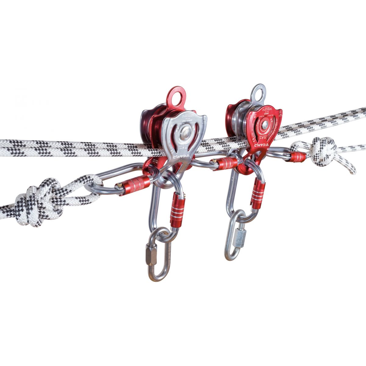 Prusik, węzęł samozaciskowy może być instalowany po obu stronach bloczka. Samosmarowne ślizgi idealnie znajdą zastosowanie podczas wolnego podnoszenia lekkich materiałów.
