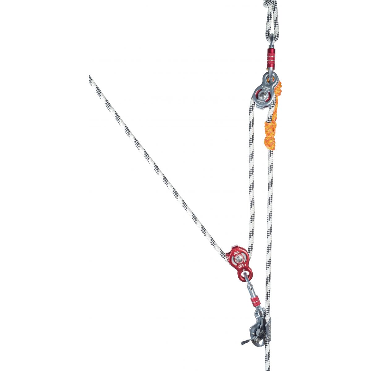 Otwór mocujący umożliwia pełny obrót karabinkiem. Bloczek kompatybilny jest z linami o średnicy do 13mm. Łożyska kulowe zapewniają wysoką wydajność przy lekkim użytku i małych prędkościach. Aluminiowa konstrukcja, stalowa ośka.