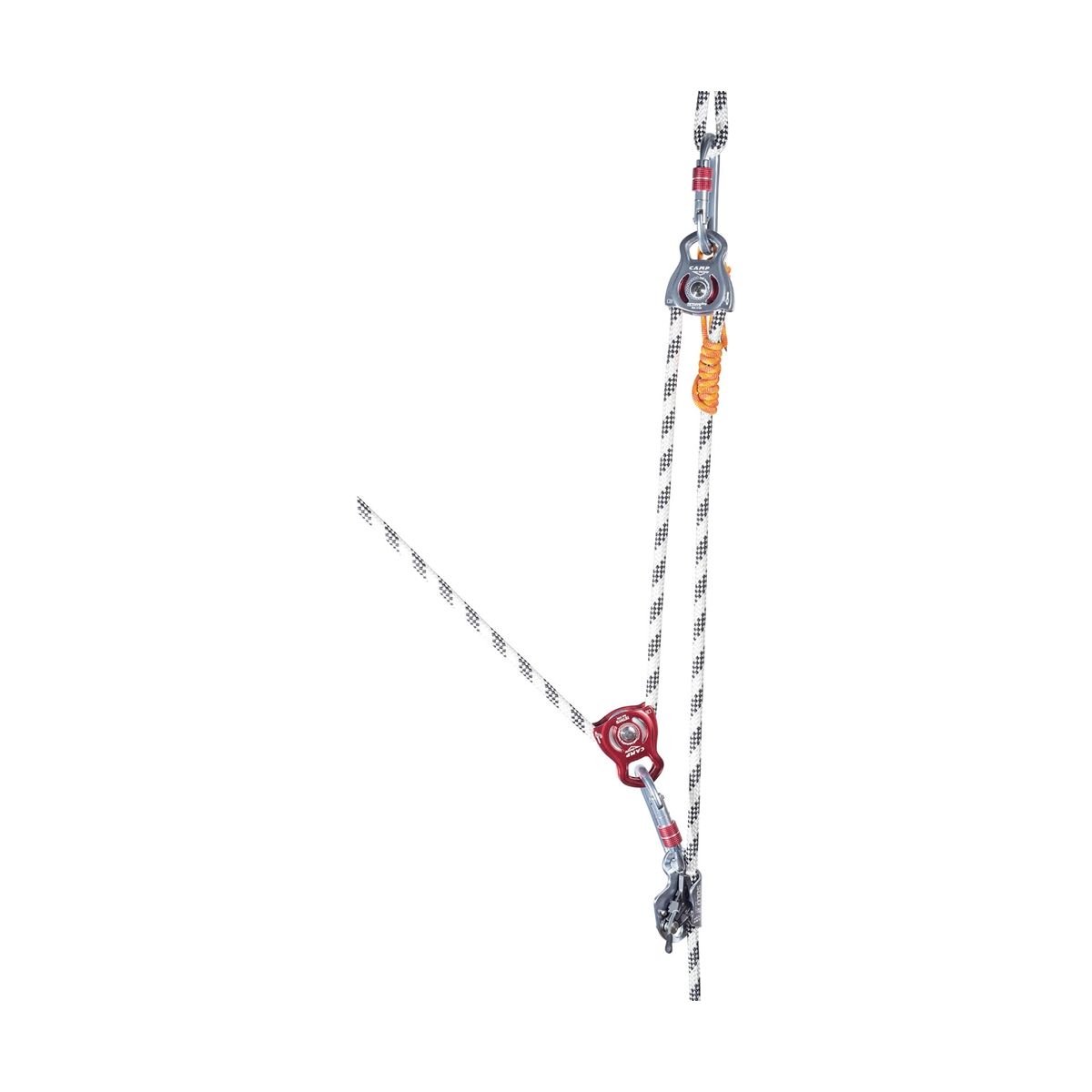Kompaktowy i lekki bloczek z ruchomymi kołnierzami i dużym punktem mocowania mieszczącym dwa karabinki.