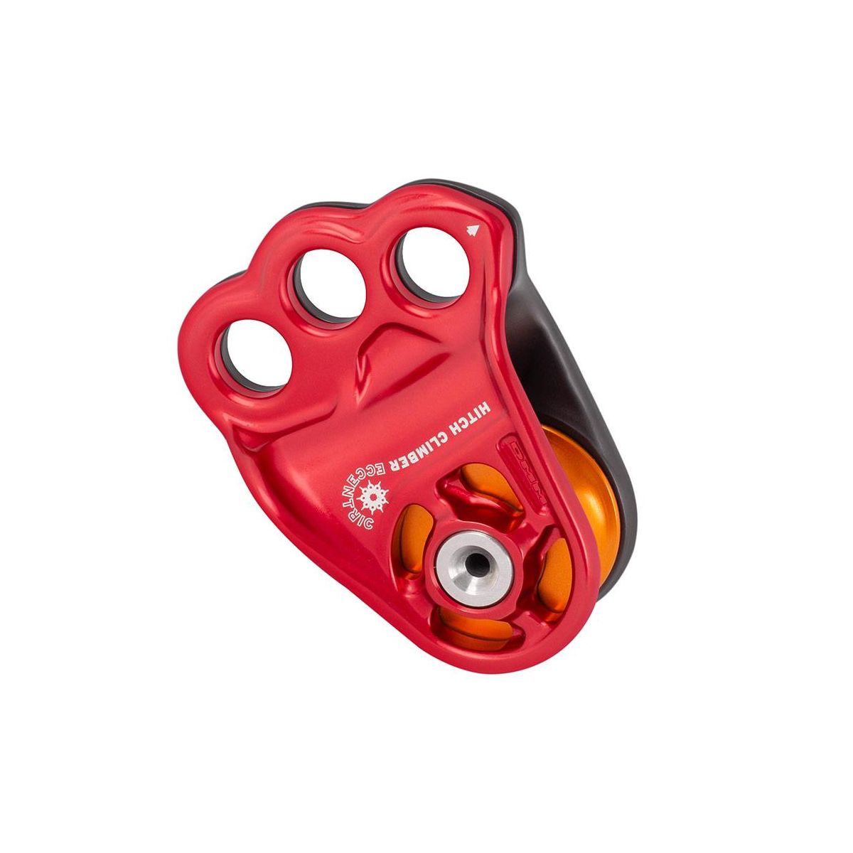 Bloczek wyposażono w łożysko kulkowe, które zapewnia wyjątkową płynność pracy i odporność na zużycie, co sprawia, że idealnie sprawdza się przy większych prędkościach obciążenia. Oś wykonana ze stali nierdzewnej zwiększa trwałość, a trzy duże punkty asekuracyjne pozwalają na szeroki wachlarz zastosowań i kompatybilność z karabinkami oraz taśmami.