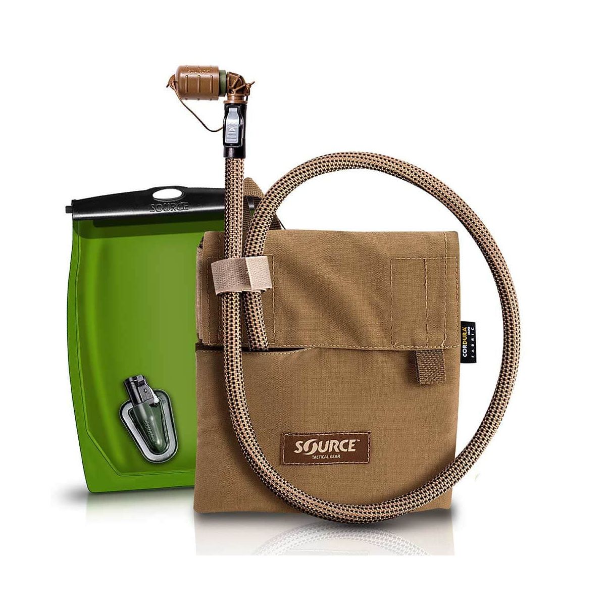 Wysokowydajny 1-litrowy zestaw hydracyjny do mocowania za pomocą systemu MOLLE do kamizelki lub pasa bojowego. Bukłak WXP Widepac wykonany jest z 3 warstw współwytłaczanej folii polietylenowej opracowanej przez firmę Source, charakteryzującej się jakością bez smaku, niskimi kosztami konserwacji, powierzchnią podobną do szkła i zintegrowaną ochroną antybakteryjną Grunge Guard.