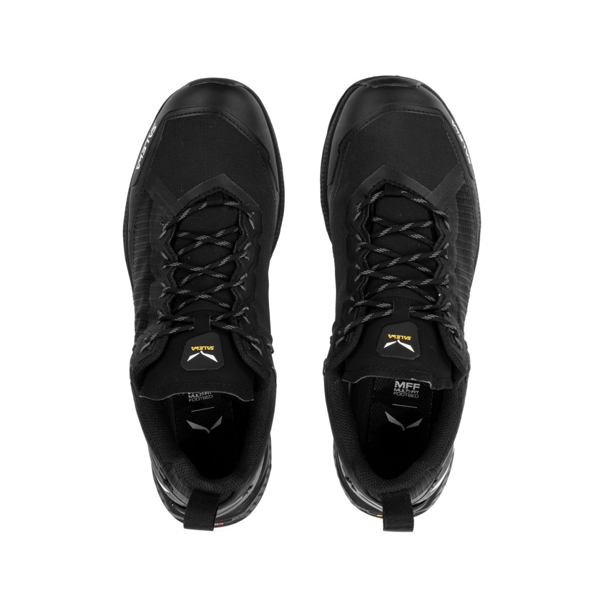 Cholewka stworzona z mocnej siateczki z włóknem ripstop jest niezwykle odporna na ścieranie, dzięki czemu bez problemu znosi użytkowanie w terenie górskim. Brzeg z TPU chroni natomiast stopę przed bolesnymi skutkami uderzeń o korzenie czy skały. Zintegrowany SALEWA® 3F System odpowiednio stabilizuje stopę podczas sesji speed hikingowych, również na stromych zboczach i odcinkach skalnych.