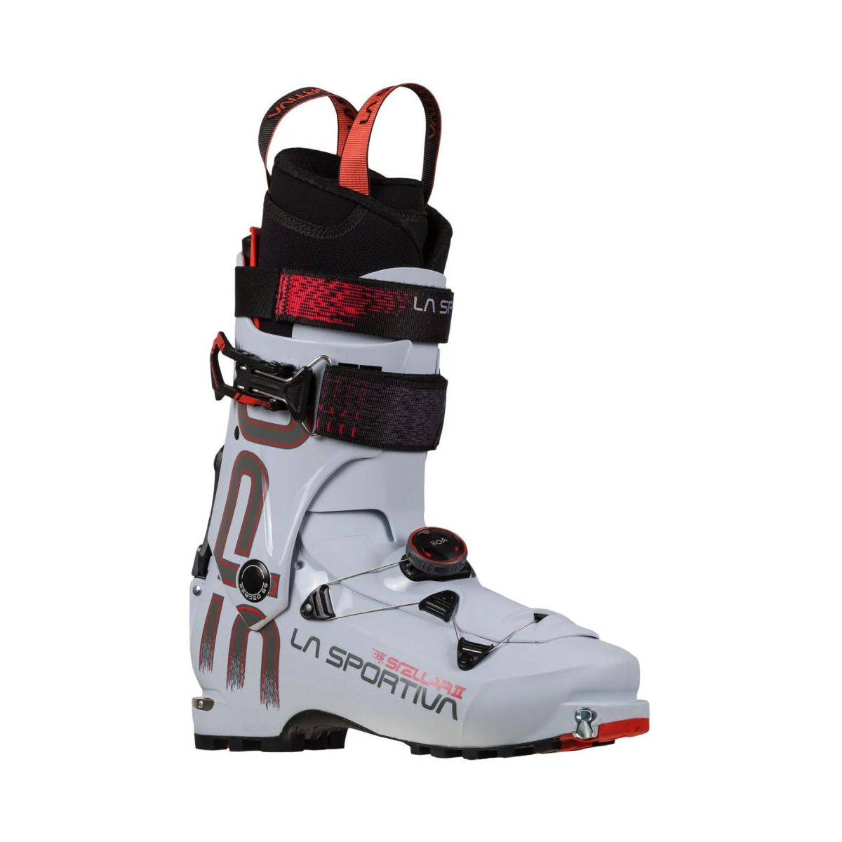 Lekkie damskie buty skitourowe La Sportiva Stellar II wykonane w technologii PEBAX® Rnew® zapewniającej lekkość na podejściu i odpowiednią sztywność buta podczas zjazdu.