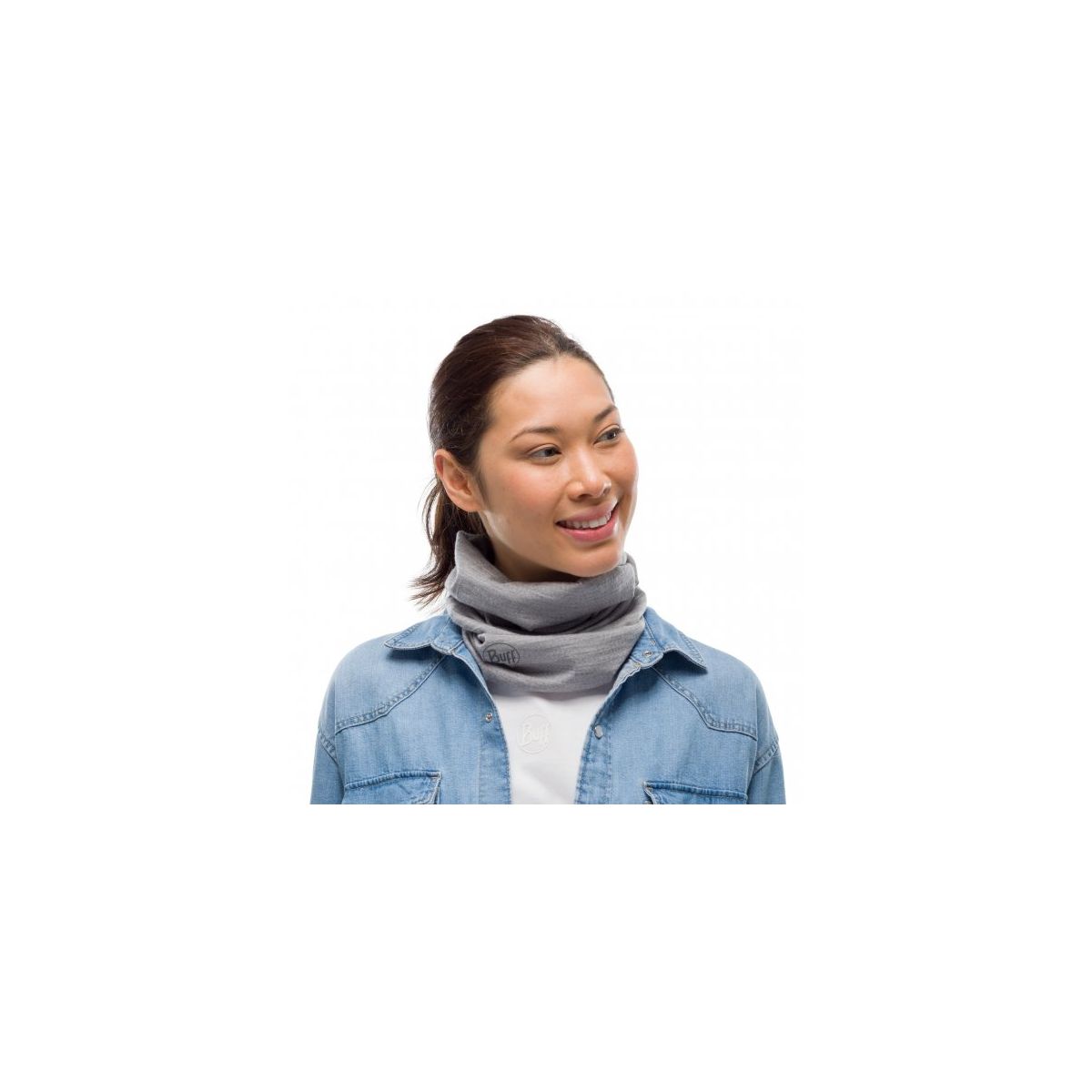 Lightweight Wool Buff® (kolor SOLID LIGHT GREY) to wszechstronny dodatek, bezszwowa, elastyczna, wygodna oraz wielofunkcyjna chusta wykonany w 100% z bardzo cienkiej wełny Merino o gramaturze 125gr/m² .