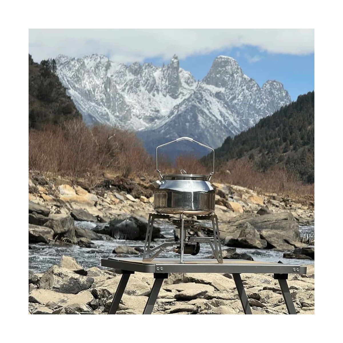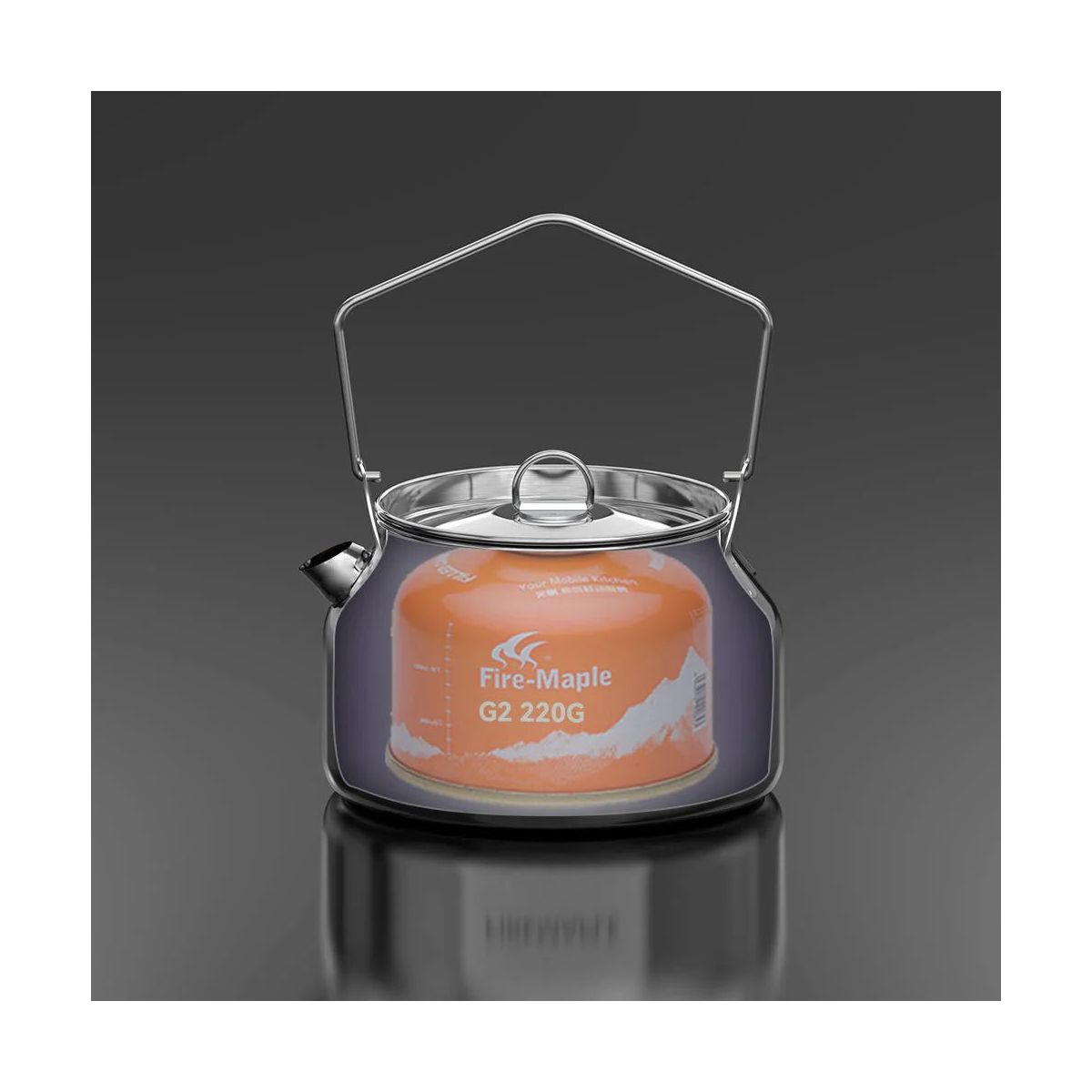 Został wykonany z wytrzymałej stali nierdzewnej, a jego kompaktowa forma umożliwia wygodne spakowanie do plecaka – w środku zmieści się nawet kartusz gazowy 220 g. Czajnik wyposażono w szeroki dzióbek o ściętym kształcie, który ułatwia wylewanie i przyspiesza gotowanie, oraz szczelną pokrywkę zabezpieczającą przed wyciekiem. Składany uchwyt pozwala zarówno na wygodne przenoszenie, jak i zawieszenie nad ogniskiem..