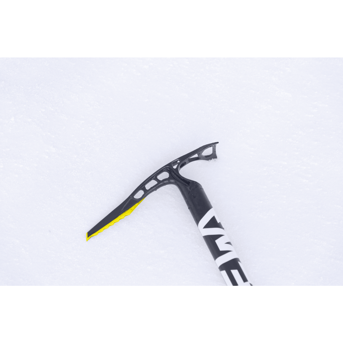 Agresywne ostrze o średnicy 3 mm, zostało wykonane ze stali węglowej, pewnie siada w każdym rodzaju lodu i skały. Otwory zmiejszają wagę czekana nie powodując strat na wytrzymałości.