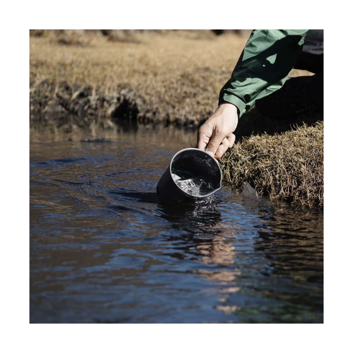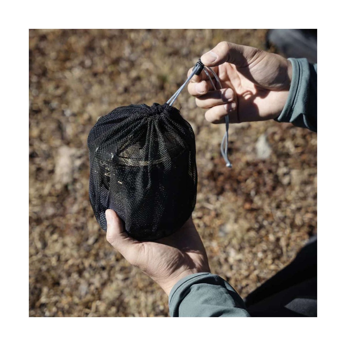 Jest wystarczająco kompaktowy, by zmieścić w środku kartusz gazowy o pojemności 230 g oraz mały, składany palnik, co czyni go bardzo praktycznym wyborem dla osób szukających wygody i funkcjonalności w jednym. W zestawie znajduje się także woreczek transportowy, co ułatwia przechowywanie i transportowanie garnka.