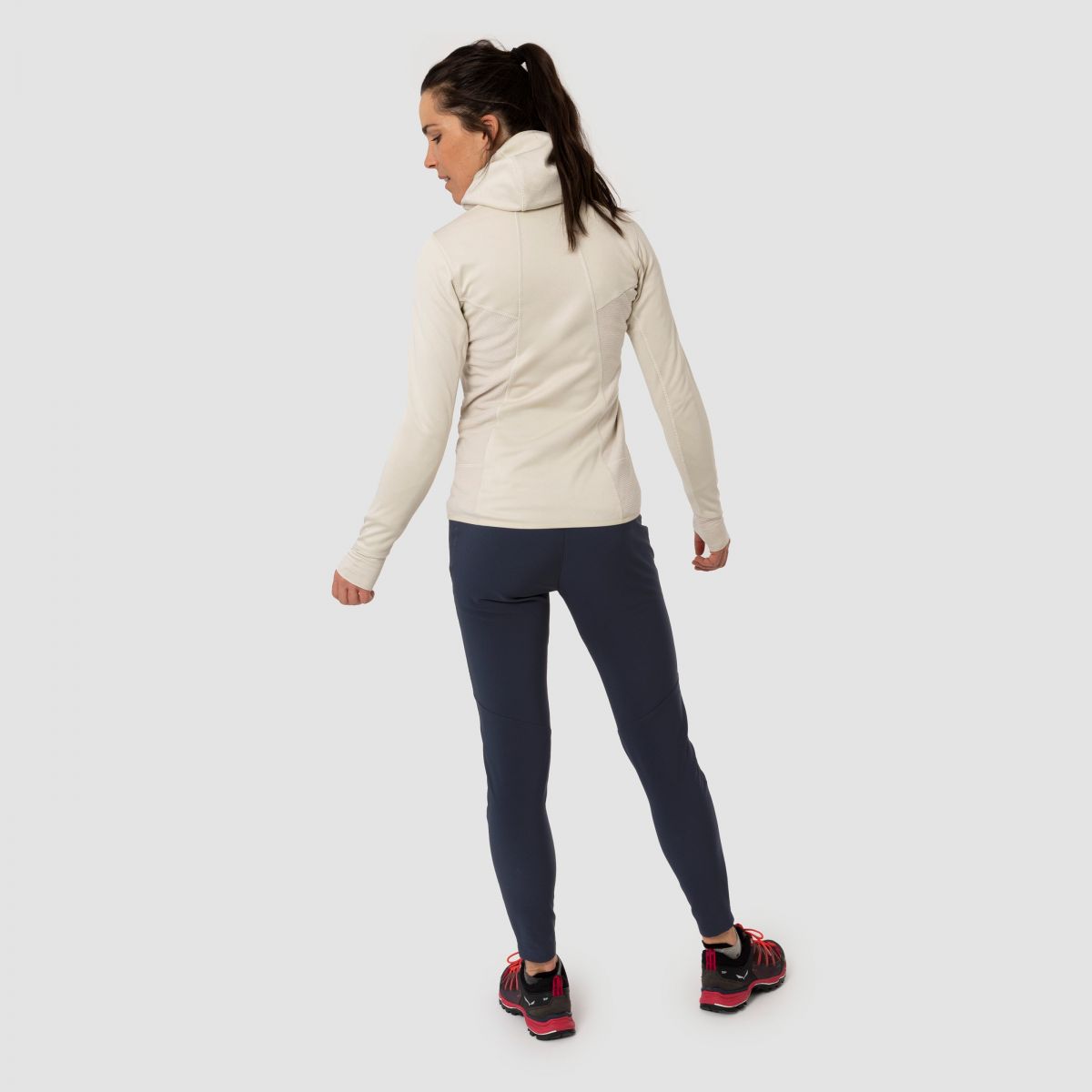 Damskie getry zainspirowane postrzępionymi szczytami parku krajobrazowego Puez-Odle w północno-wschodnich Dolomitach. Sportowe, dopasowane do ciała Puez Warm Durastretch Cargo Tights to doskonały wybór do trekkingu i innych aktywności górskich.Funkcjonalne materiały często nie najlepiej znoszą kontakt z ostrą skałą. Na szczęście dla materiału Durastretch surowy górski teren to środowisko naturalne. Ponadto materiał jest elastyczny w czterech kierunkach i świetnie oddycha, dzięki czemu getry znakomicie nadają się także do wspinania. Model wykończony został przyjazną dla środowiska impregnacją hydrofobową wolną od związków PFC, by bez problemu odeprzeć lekki opad deszczu.