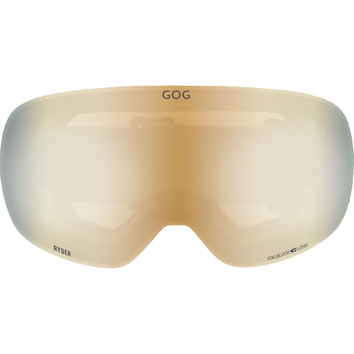 GOG RYDER H720-4 to nowoczesne gogle narciarskie, które świetnie sprawdzą się podczas długich zimowych zjazdów. Soczewki zastosowane w Goglach RYDER, zaopatrzone są w filtr UV400, dodatkową powłokę zapobiegającą parowaniu (FOG BLOCK), powłokę hydrofobową (HYDROPHOBIC), zabezpieczającą przed osadzaniem się kropel wody na powierzchni soczewki oraz lustrzaną, zwiększającą ochronę oka przed szkodliwym promieniowaniem podczerwonym i redukującą odblaski. Designerskie Gogle RYDER doskonale dopasowują się do kształtu głowy dzięki zastosowaniu miękkiej i przyjemnej w dotyku pianki.