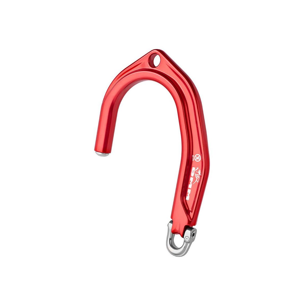 D-kształtna szekla na spodzie redukuje skręcanie i umożliwia płynniejsze trawersowanie, a jej wyoblone krawędzie chronią liny przed uszkodzeniami. Szeklę można łatwo odkręcić, co pozwala na elastyczne łączenie haka z liną zakończoną okiem.