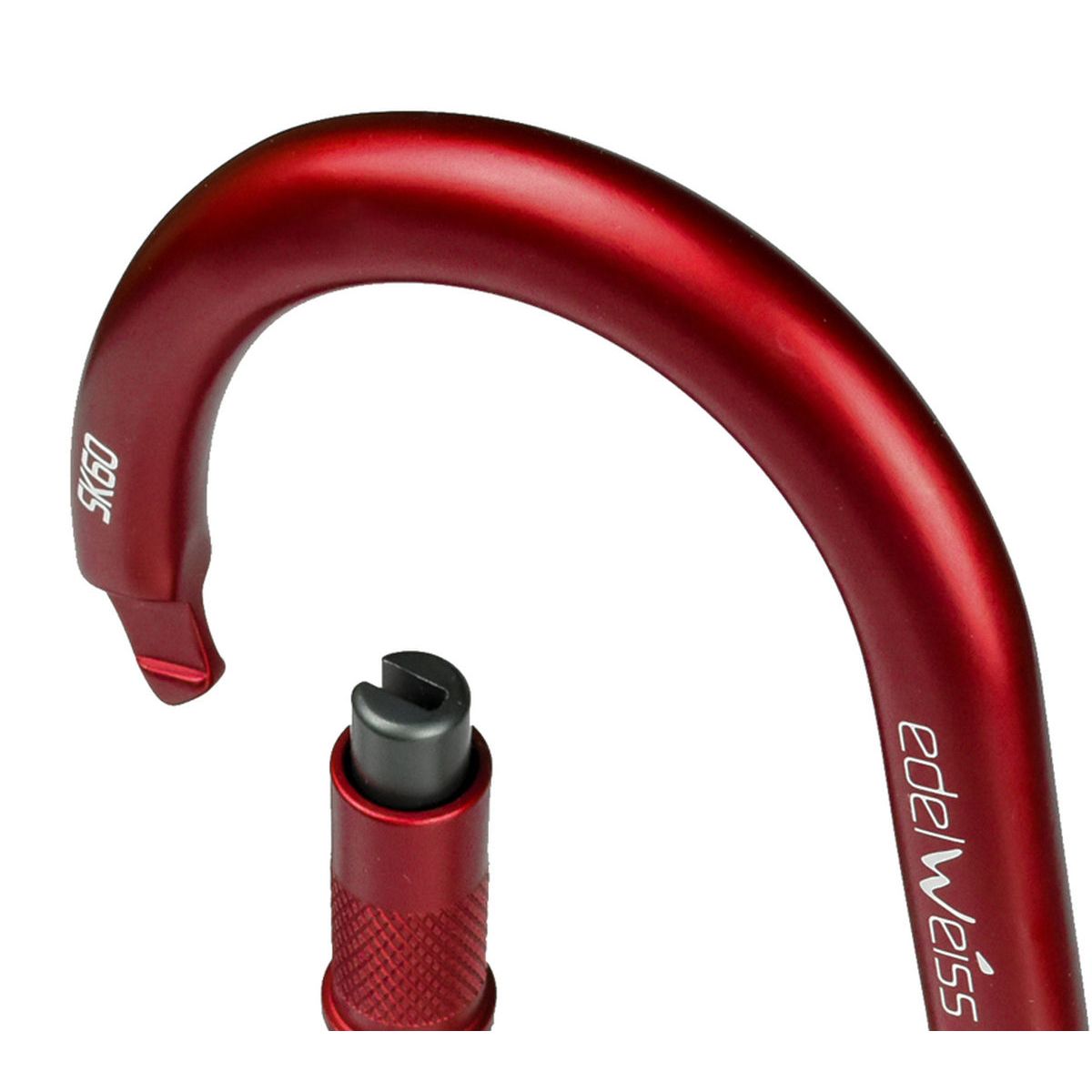 SK60 posiada zamek typu Keylock, co eliminuje problem zaczepiania się karabinka o elementy sprzętu czy ścianki przyrządów. Brak klasycznego noska zapewnia płynniejszą pracę i większy komfort użytkowania.