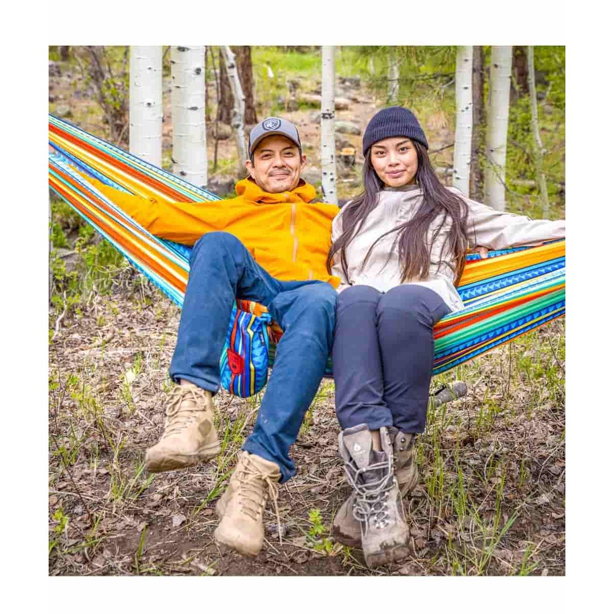 Szukasz hamaka, który łączy wygodę z wyjątkowym stylem? Grand Trunk Double Deluxe Print to dwuosobowy hamak w efektownych, barwnych wzorach, który sprawdzi się zarówno podczas samotnych chwil relaksu, jak i wspólnego odpoczynku.