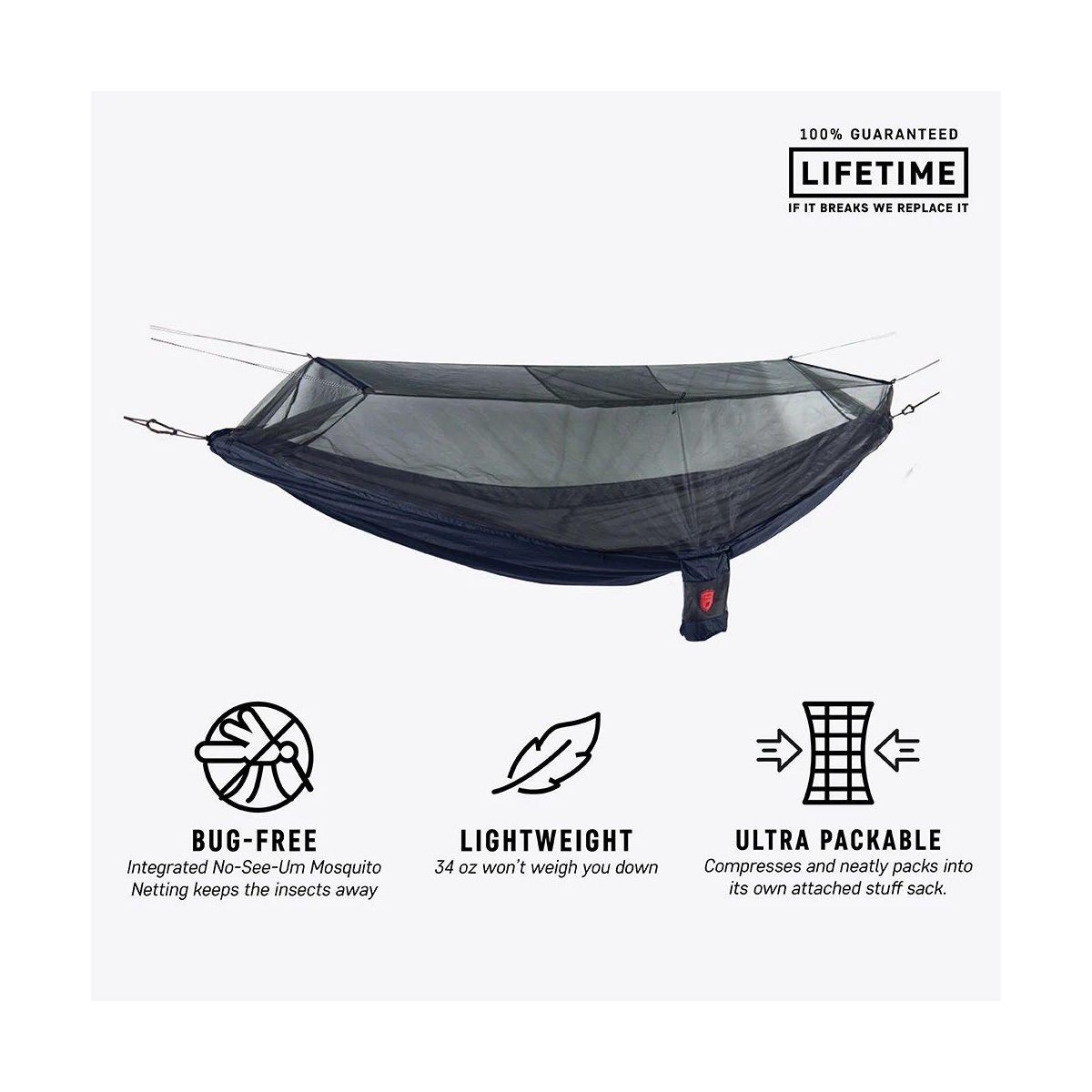 Grand Trunk Skeeter Beeter XT Navy Blue to odporny na ataki komarów hamak z moskitierą, który zapewni Ci spokojną noc trzymając je z dala od Ciebie.