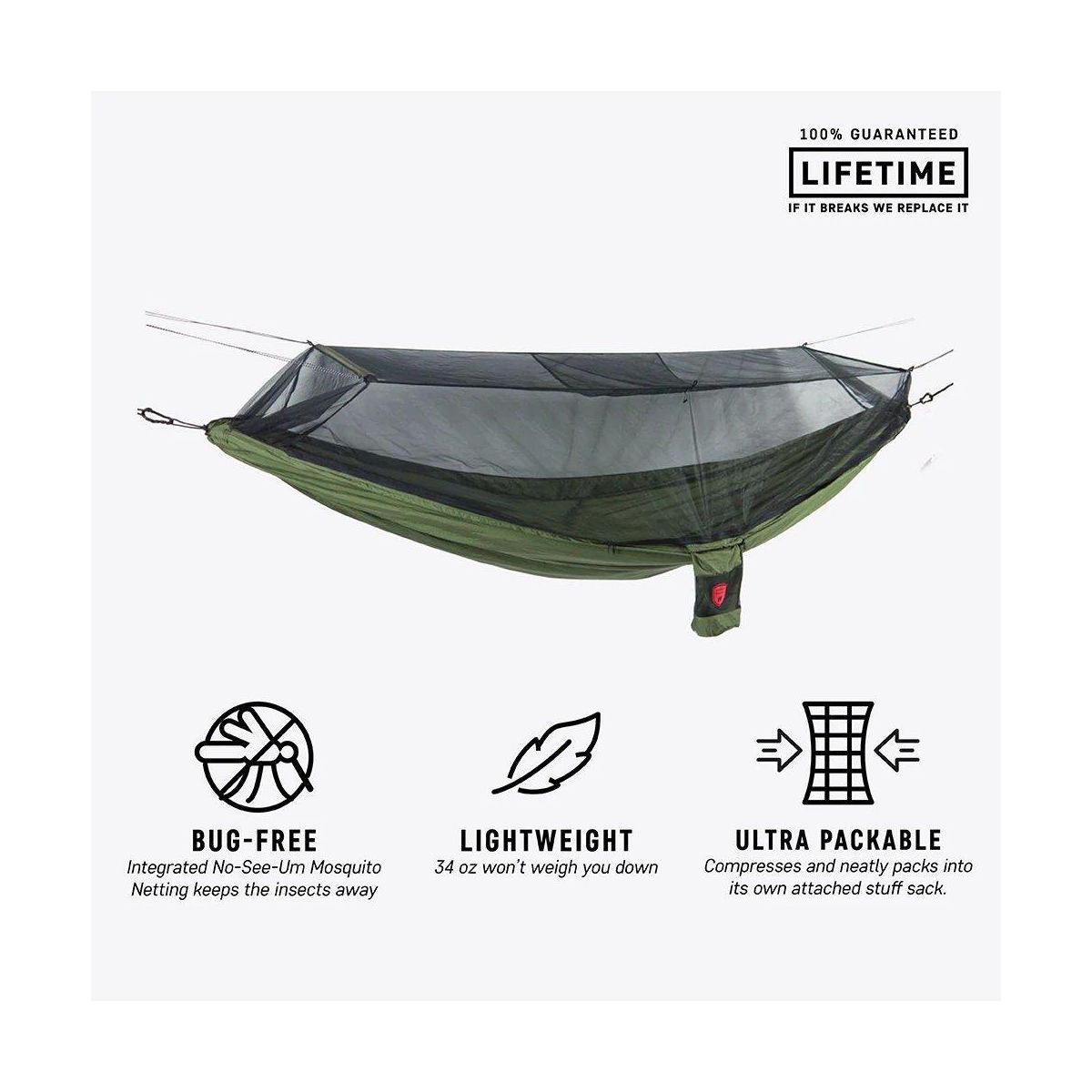 Grand Trunk Skeeter Beeter XT Olive to odporny na ataki komarów hamak z moskitierą, który zapewni Ci spokojną noc trzymając je z dala od Ciebie.