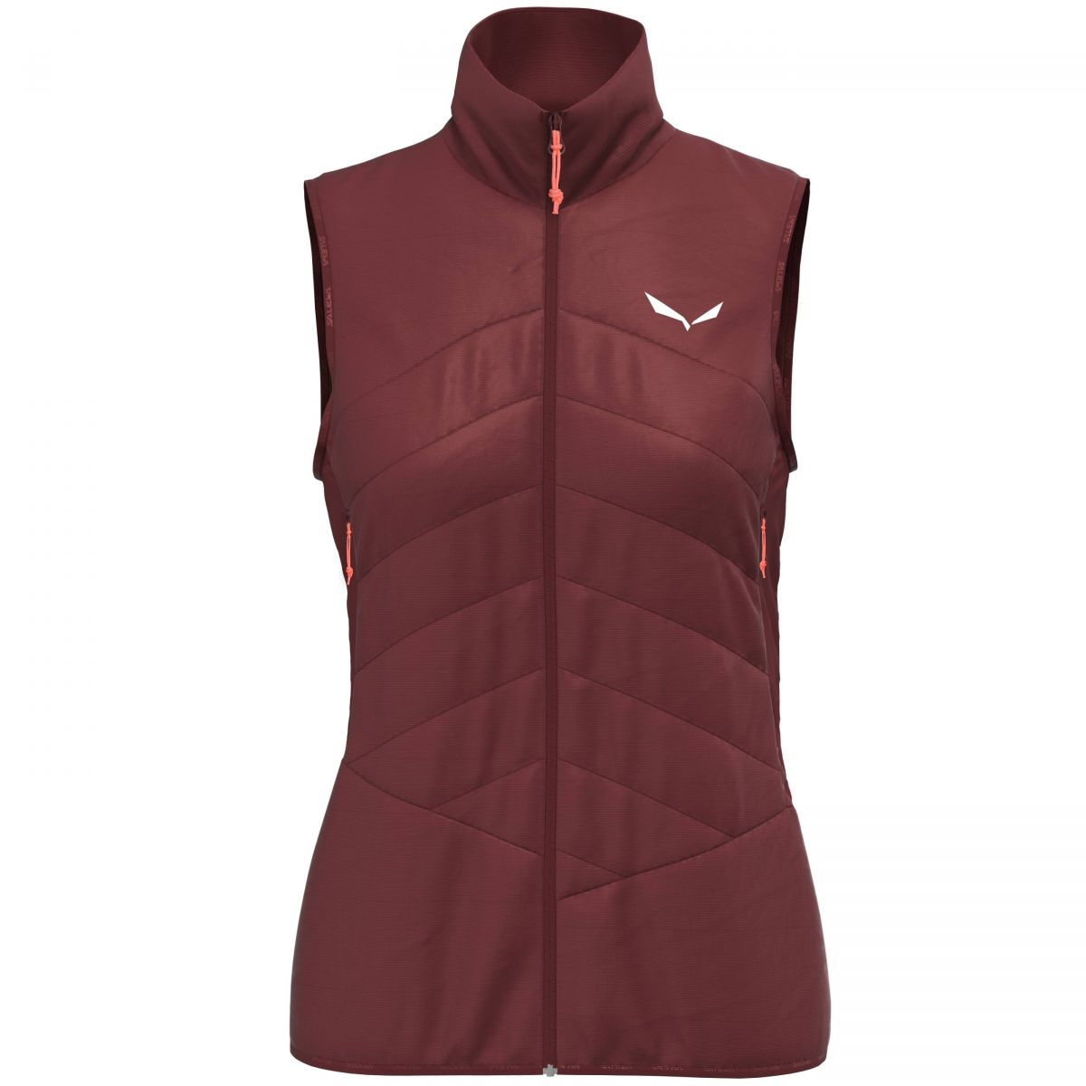 Damska kamizelka Salewa Ortles Hybrid Tirolwool® (kolor SYRAH), to dopasowana do ciała kamizelka z izolacją hybrydową TirolWool® Responsive do wspinaczki górskiej i wszechstronnego użytku w górach.