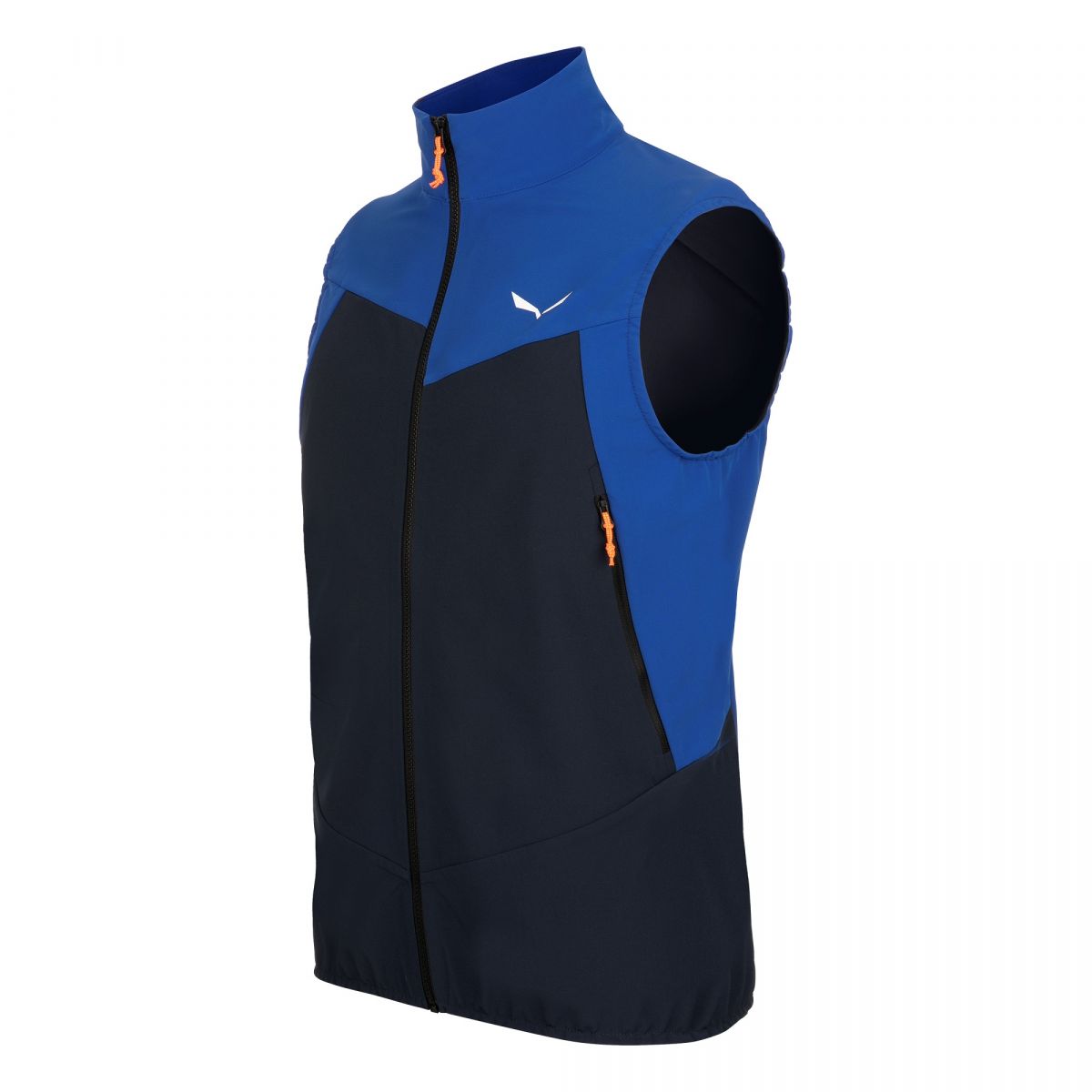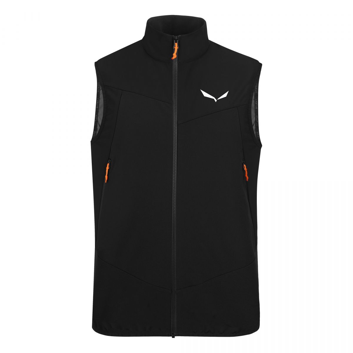 Męski wiatro- i wodoodporny softshellowy bezrękawnik Salewa Sella, idealny do skitouringu.
