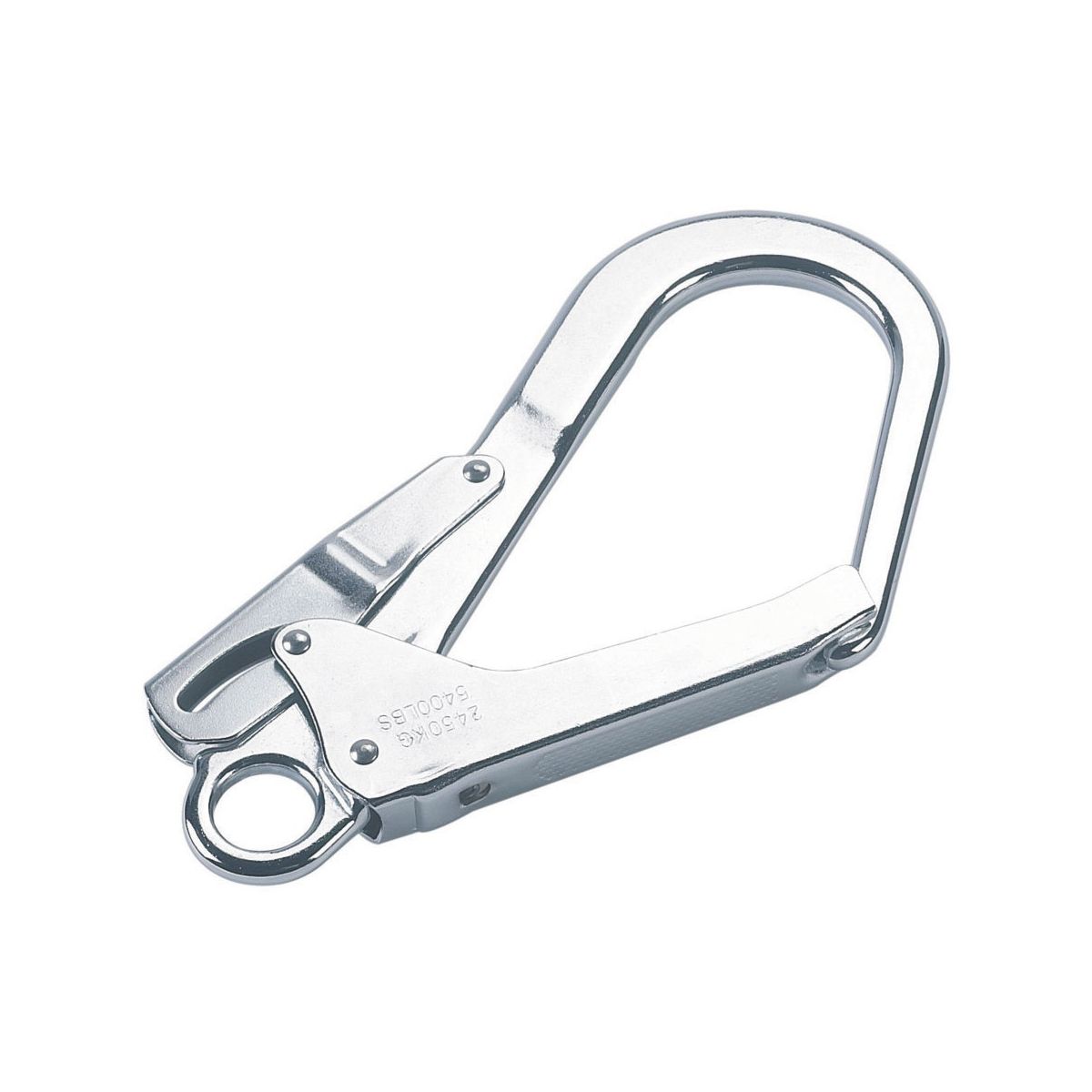 Karabinek/hak typu MGO. Wykonany ze stali.
