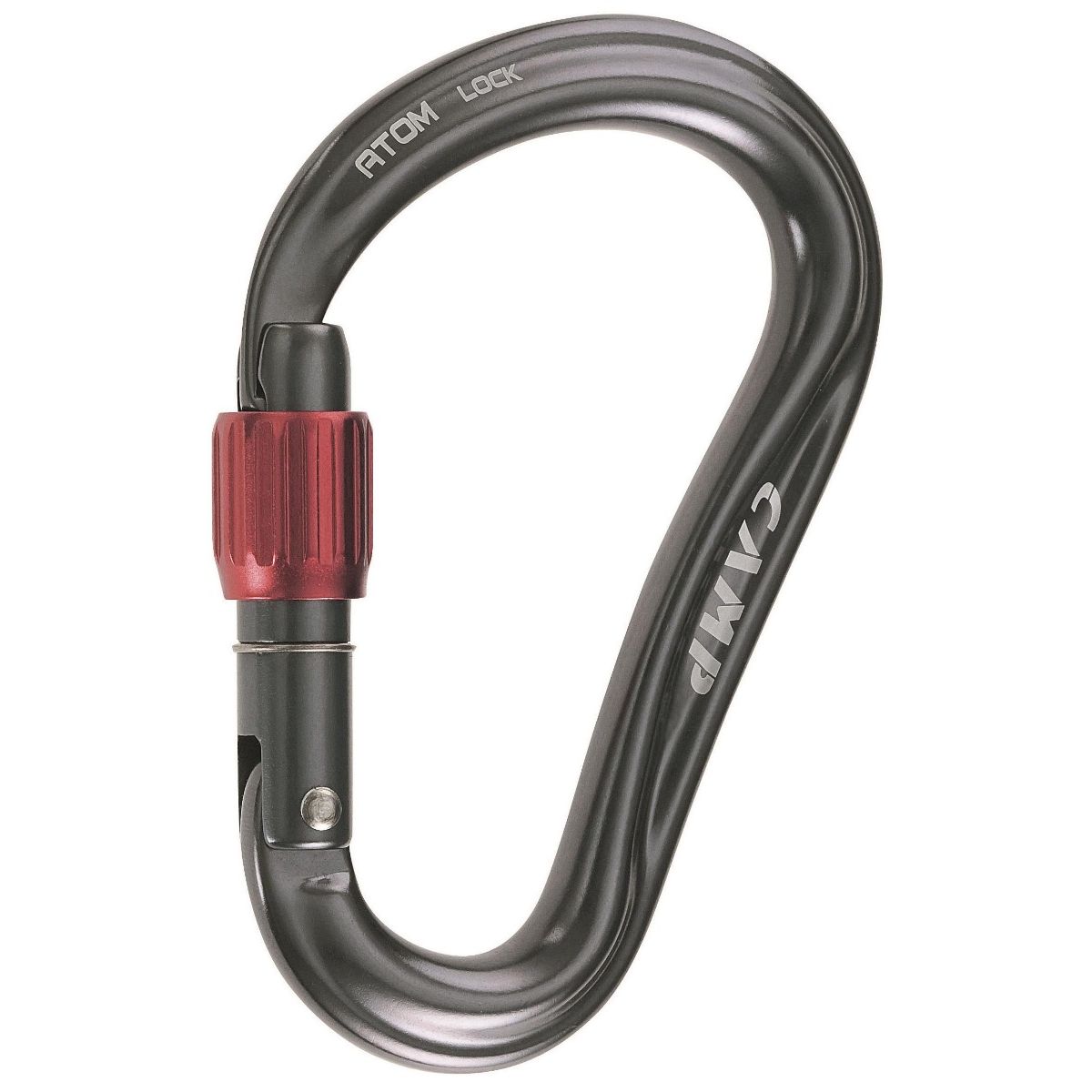 Zakręcany karabinek HMS Camp Atom Lock o wysokiej wytrzymałości, zaprojektowany do asekuracji i zjazdów.