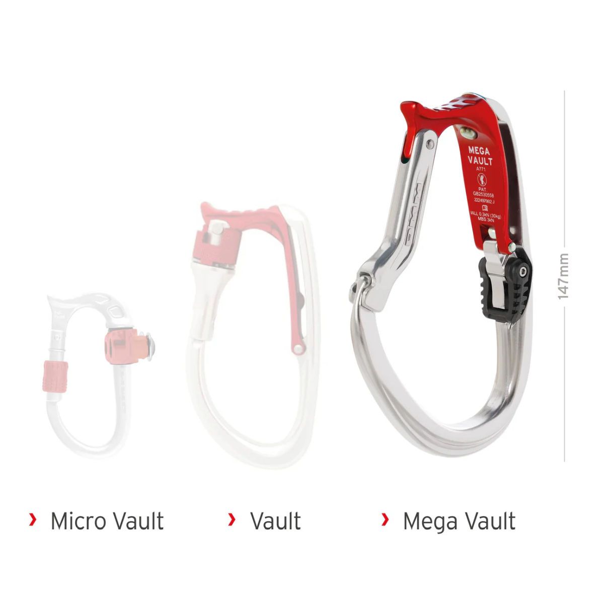 DMM Mega Vault Red Silver to solidny karabinek sprzętowy, idealny do przenoszenia i organizowania narzędzi. Jest to największa wersja z serii Vault, zaprojektowana z myślą o jeszcze większej funkcjonalności i wytrzymałości.