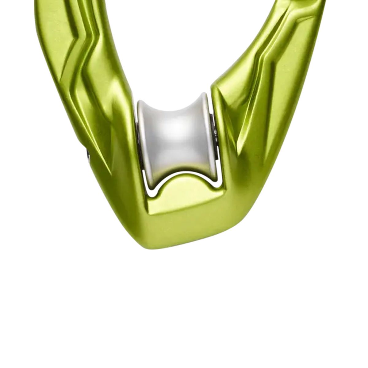 Wbudowana w grzbiet rolka minimalizuje tarcie liny i – co najważniejsze – działa bez zarzutu nawet pod pełnym obciążeniem. Sprytnie zaprojektowany profil karabinka gwarantuje, że lina zawsze prowadzi się centralnie przez rolkę, niezależnie od kierunku pracy – nie ma mowy o szarpaniu czy zrywanym tarciu.