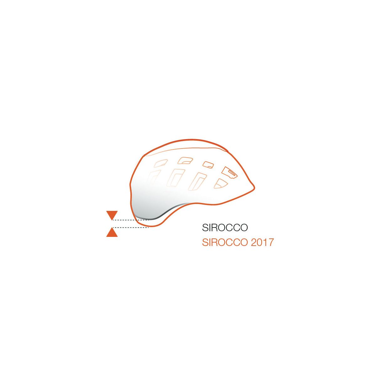 Petzl Sirocco to kask oparty na hybrydowej konstrukcji, która łączy skorupę z pianką EPP (spieniony polipropylen) oraz sztywną skorupę z pianką ESP (spieniony polistyren). Taka budowa zapewnia skuteczną ochronę, zwłaszcza z tyłu, gdzie jest obniżony. Kask doskonale chroni przed uderzeniami z boku i z tyłu, co potwierdza koncepcja Petzl TOP AND SIDE PROTECTION.