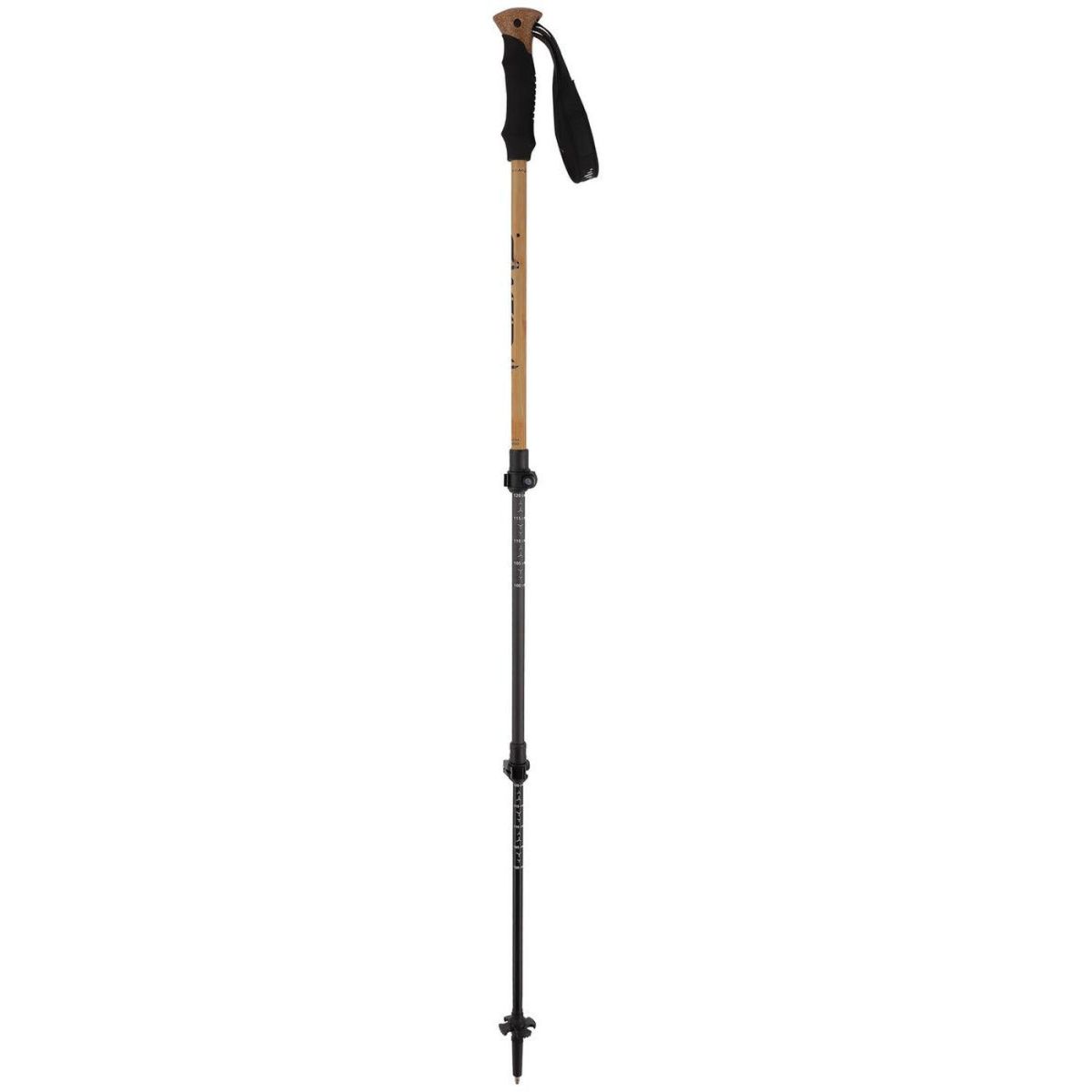 Naturalne wzornictwo kijków uzupełnia korkowe zakończenie rączek. Wyściełane pętle nadgarstkowe dodają komfortu a widiowe groty zwiększają trwałość na skałach i kamieniach.