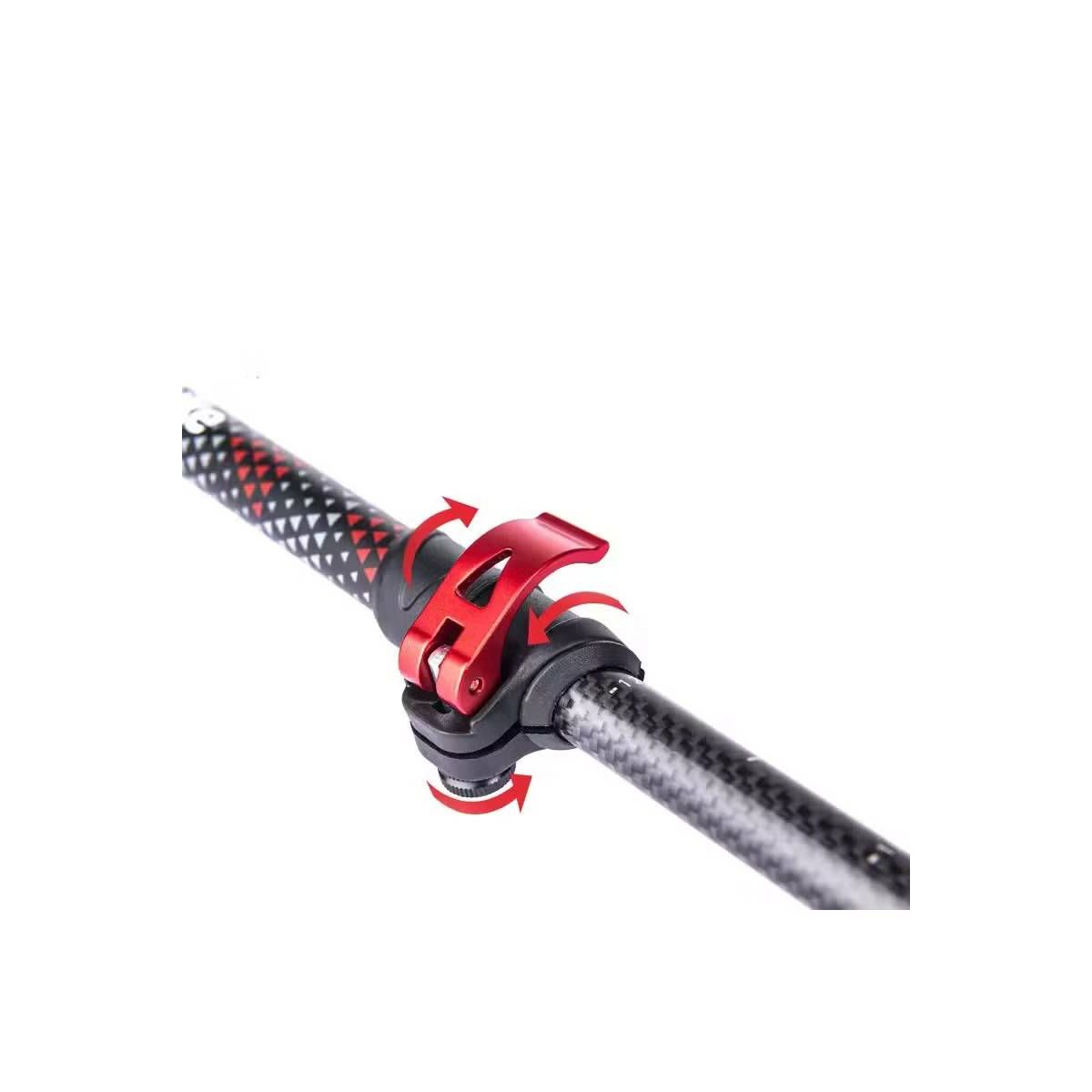 Włókno węglowe odznacza się ponadprzeciętną odpornością na uszkodzenia mechaniczne i odkształcenia. Ma świetny stosunek wagi do wytrzymałości, a jeden kij waży tylko 193 g. jest to model o konstrukcji trzysegmentowej, teleskopowej dzięki czemu można łatwo regulować jego długość. Po złożeniu kije mają 62 cm, co ułatwia ich troczenie do plecaka, a maksymalnie można je rozłożyć do 135 cm. Blokowanie odbywa się za pomocą zewnętrznych blokad zaciskowych, które można łatwo obsługiwać nawet po zmoczeniu, zawilgnięciu, na mrozie czy w rękawiczkach.
