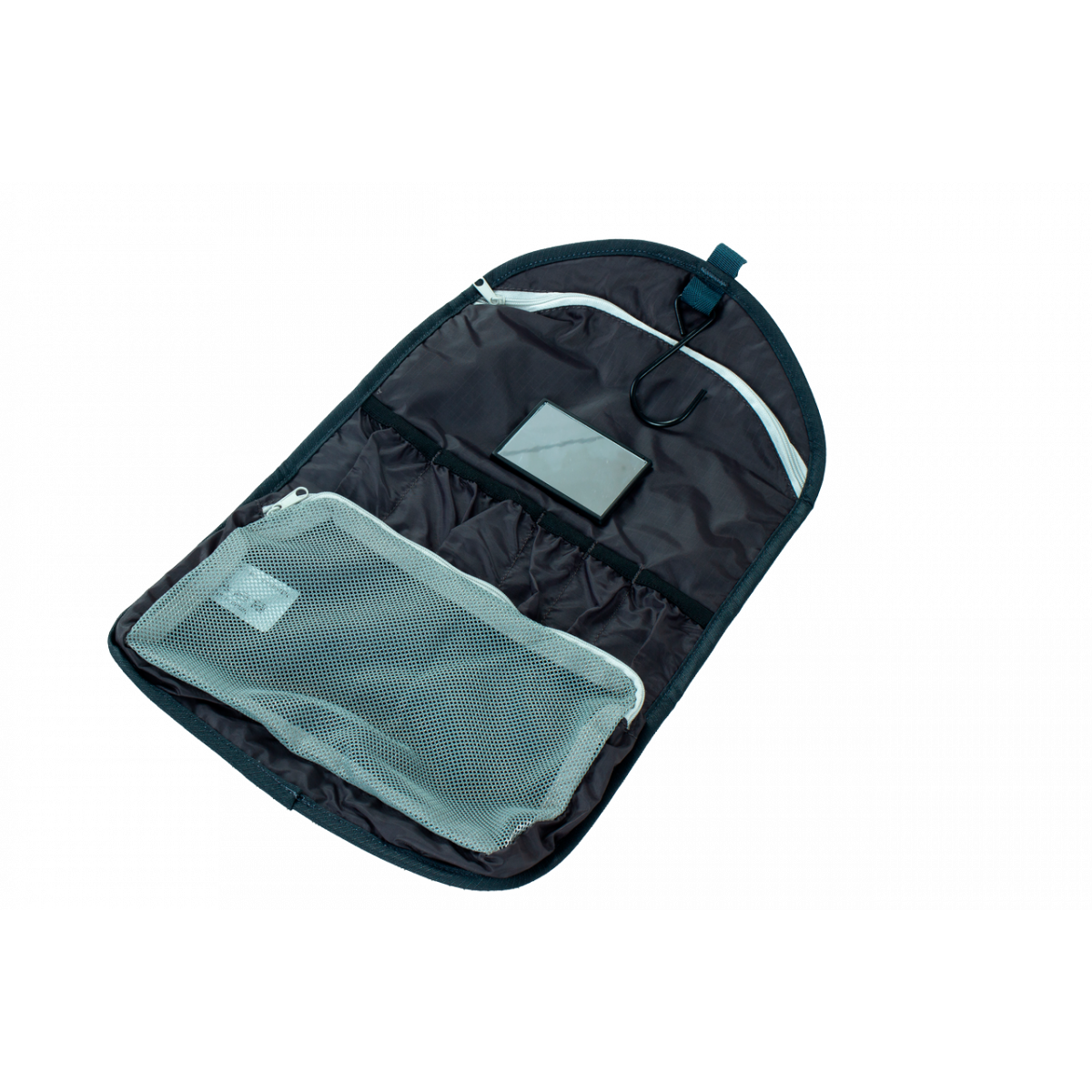 Dzięki dobrej pakowności sprawdzi się zarówno podczas eskapad z plecakiem, jak i w domowej łazience. Po rozłożeniu użytkownik ma do dyspozycji dwie kieszenie: długą i pojemną oraz drugą, siatkową w kształcie prostokąta. Obie zamykane za pomocą suwaka. Pomiędzy nimi znajduje się kieszeń dzielona na pięć niezależnych przegródek, z przymocowanym nad nimi lusterkiem.