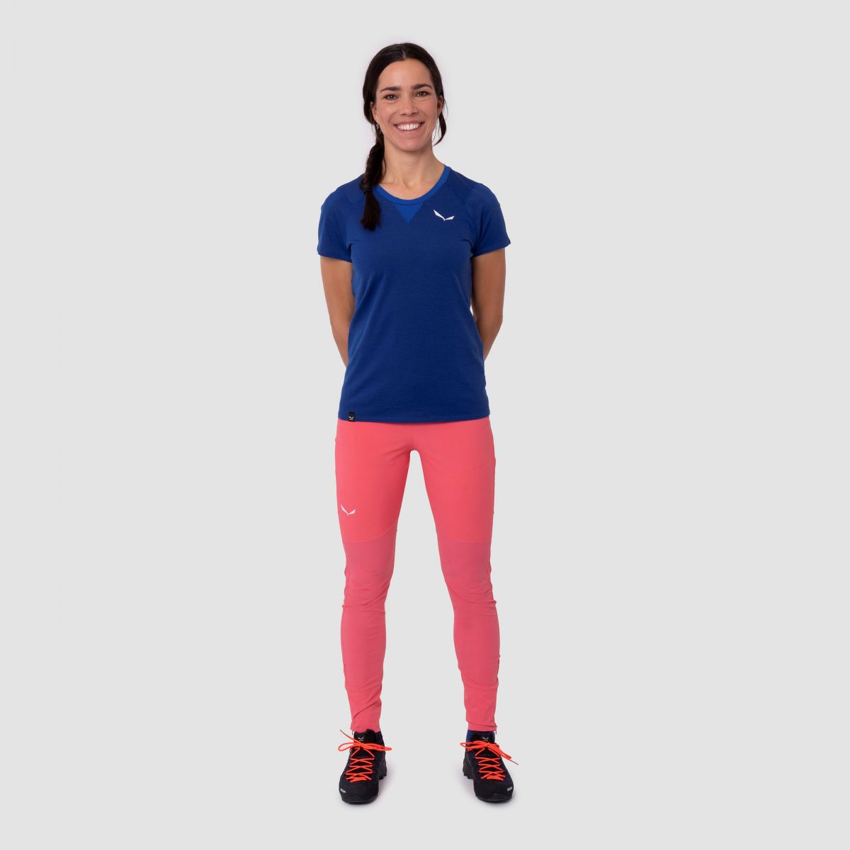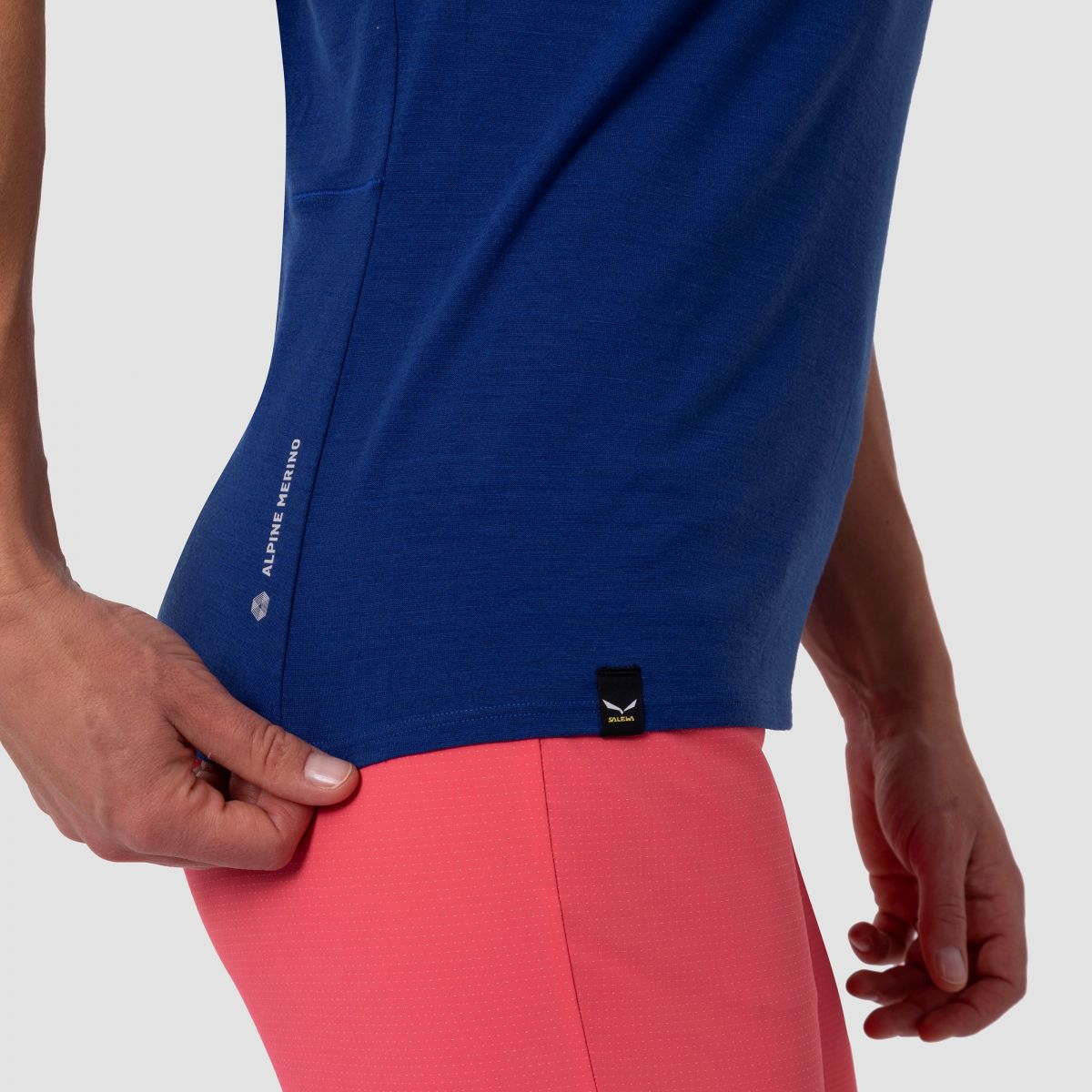 Lekka damska letnia koszulka Salewa Agner z włókien merino, idealna do wspinaczki, trekkingu i wszechstronnego użytku w górach.