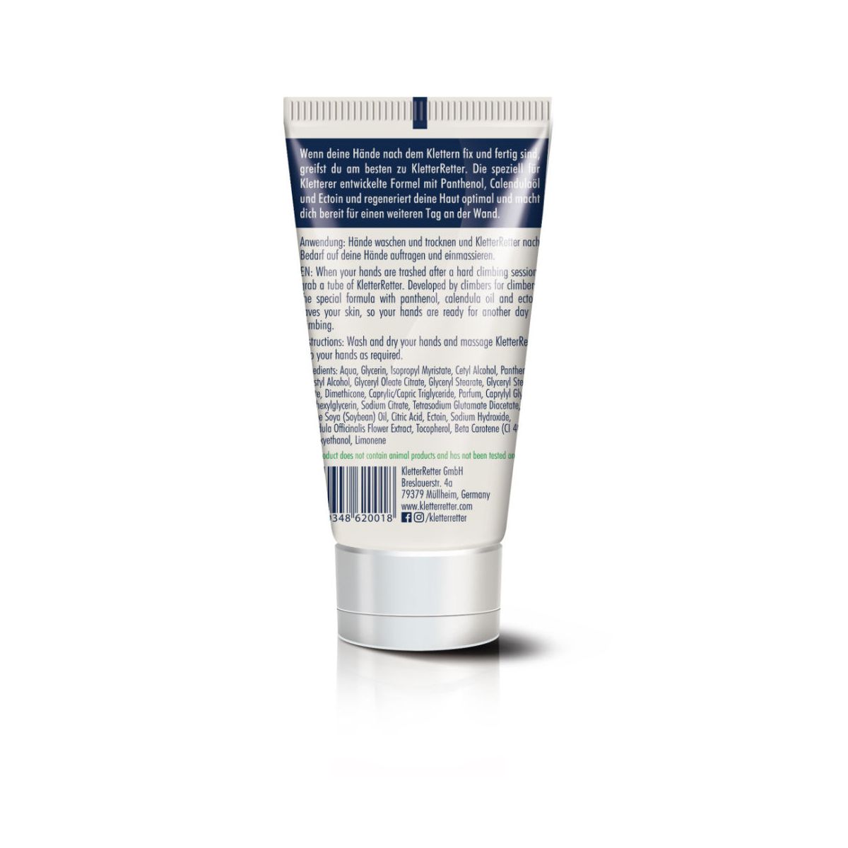 KletterRetter Hand Cream 75ml to niezastąpiony towarzysz wspinaczy, stworzony z myślą o regeneracji i pielęgnacji skóry dłoni po intensywnym wysiłku. Formuła oparta na pantenolu, nagietku i ektoinie szybko się wchłania, nie pozostawiając tłustego filmu, dzięki czemu możesz od razu wrócić do działania.