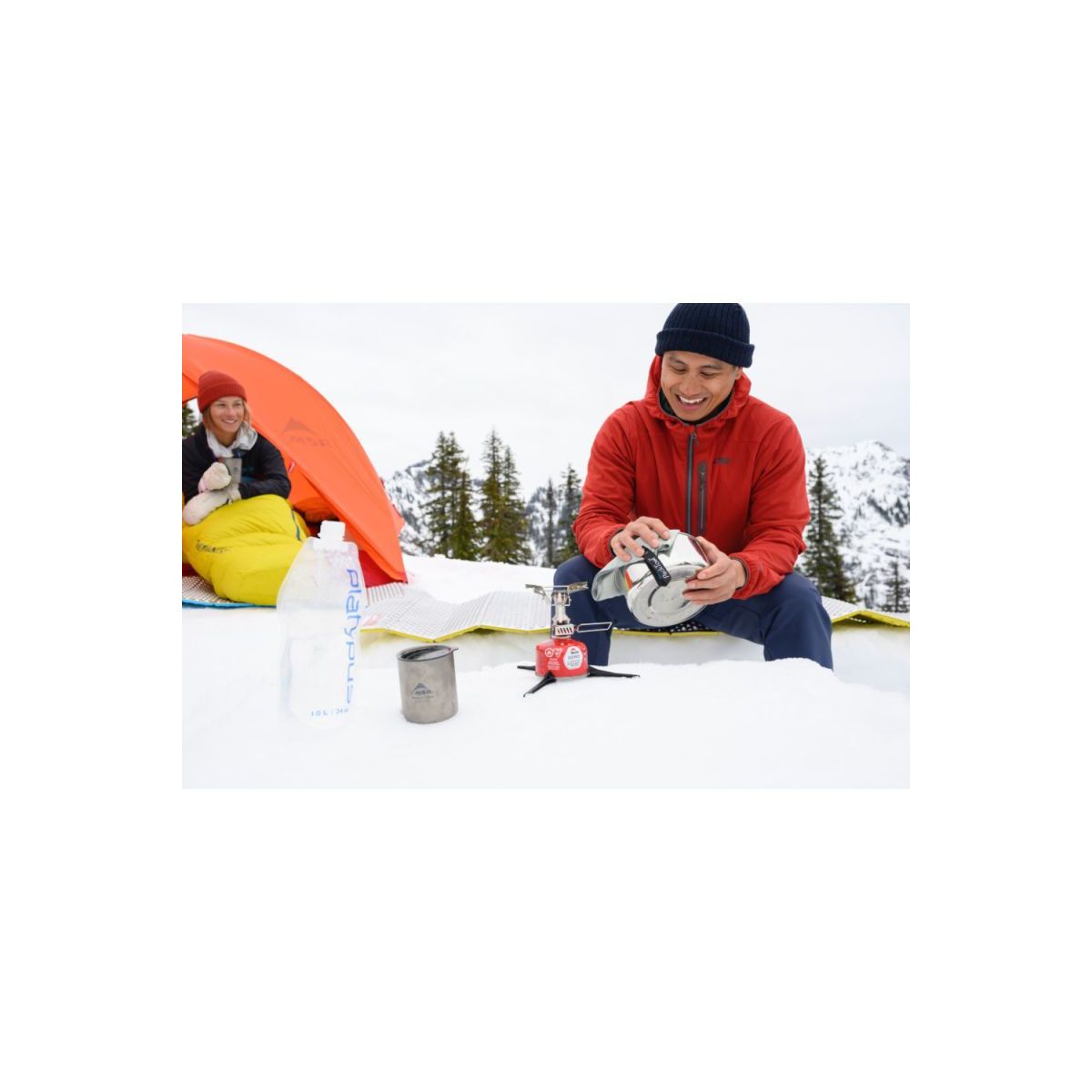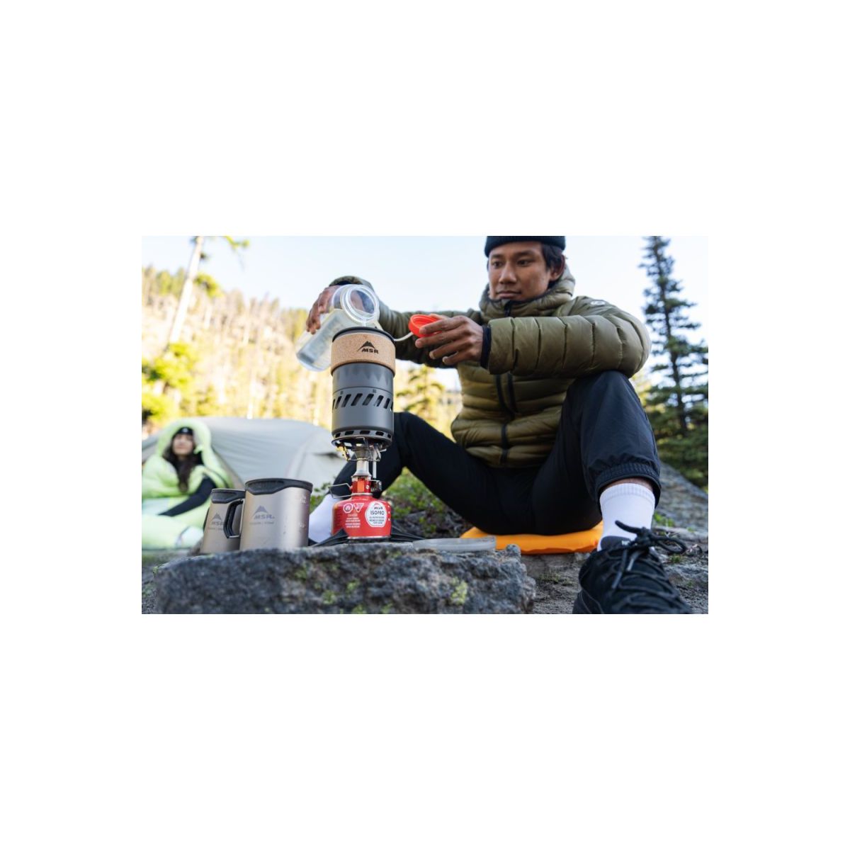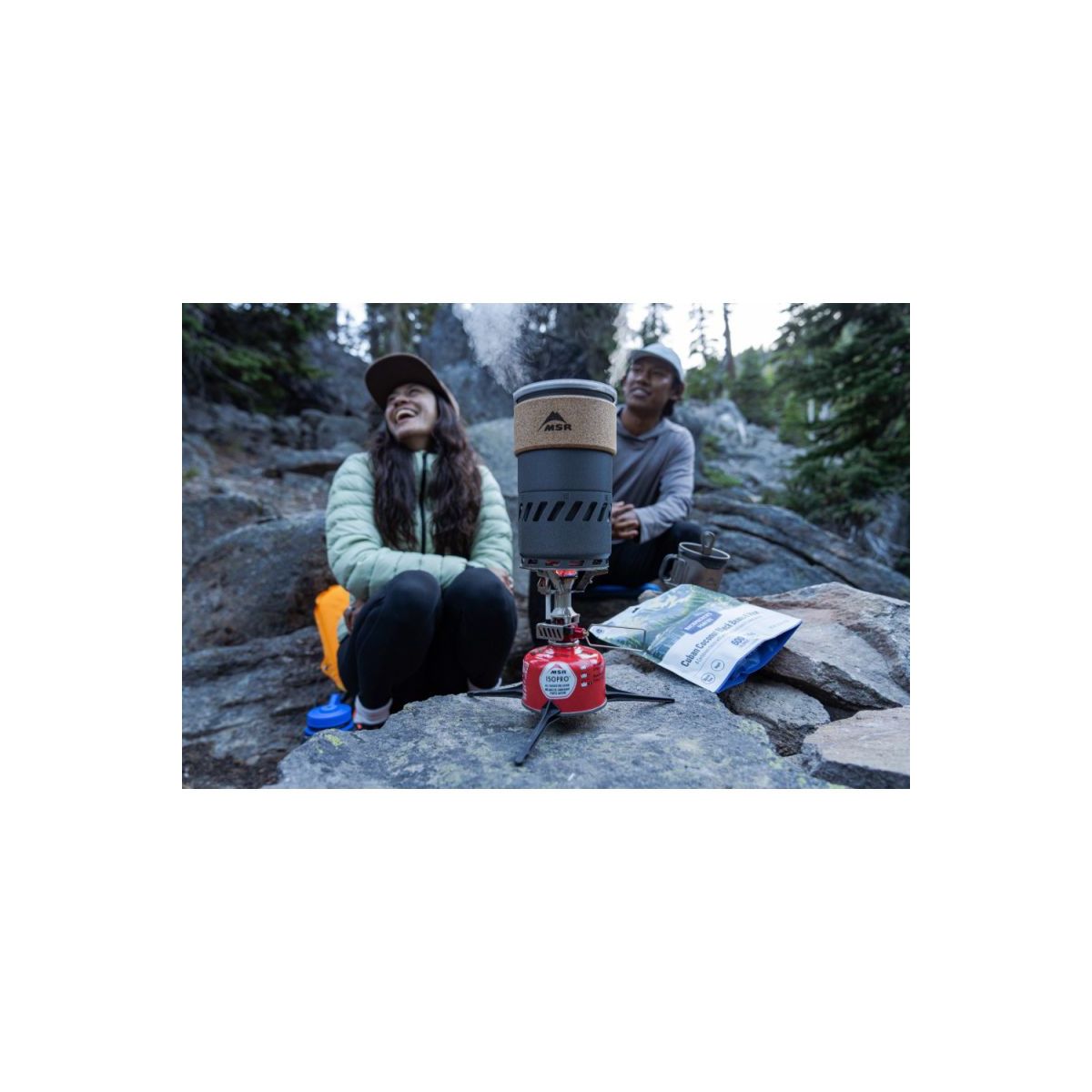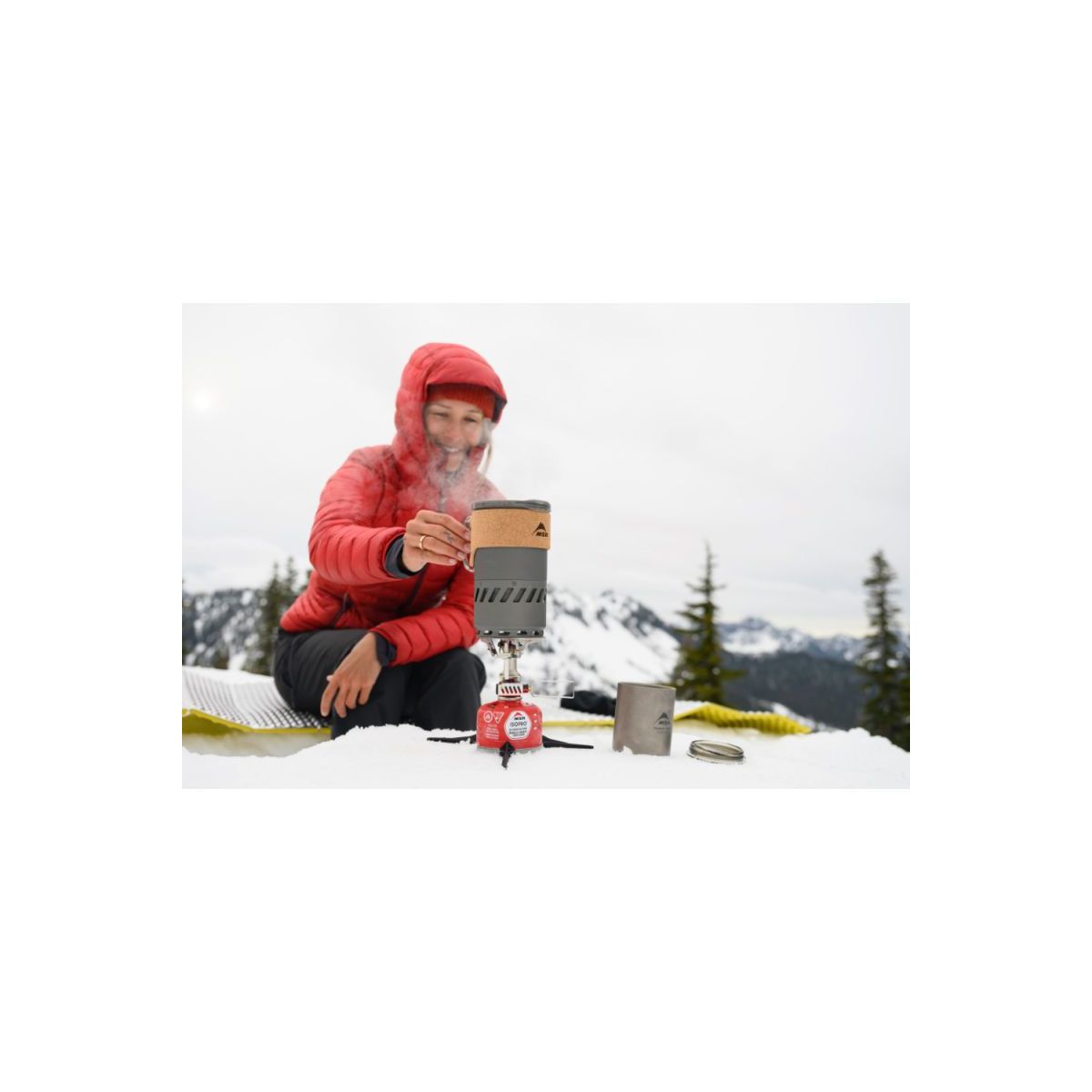 Kuchenka sprawdzi się doskonale w zmiennych warunkach – nawet na dużych wysokościach i w niskich temperaturach – dzięki zastosowaniu regulatora ciśnienia i osłony przeciwwiatrowej znanej z serii Pocket Rocket. Cały zestaw jest niezwykle kompaktowy, lekki i łatwy do spakowania, co czyni go idealnym wyborem na trekking, biwak, wyprawy górskie i podróże z plecakiem.
