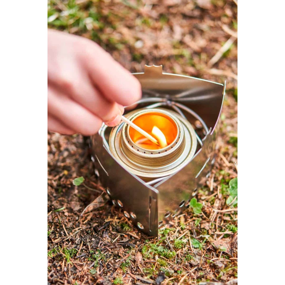 Pierścień simmering pozwala regulować moc i gasić płomień. Palnik działa na alkohol metylowy i nie wymaga konserwacji.