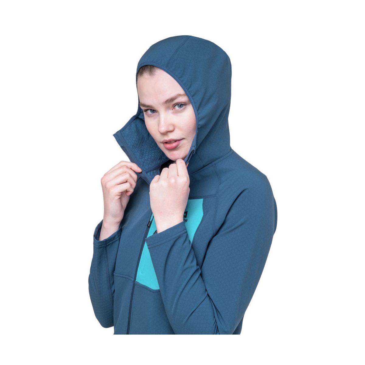 Dopasowany krój Active Fit został zaprojektowany tak, aby dobrze układał się pod uprzężą, eliminując zbędny nadmiar materiału. Regulowany kaptur Mountain Hood zapewnia dodatkową ochronę przed wiatrem w trudnych warunkach terenowych.