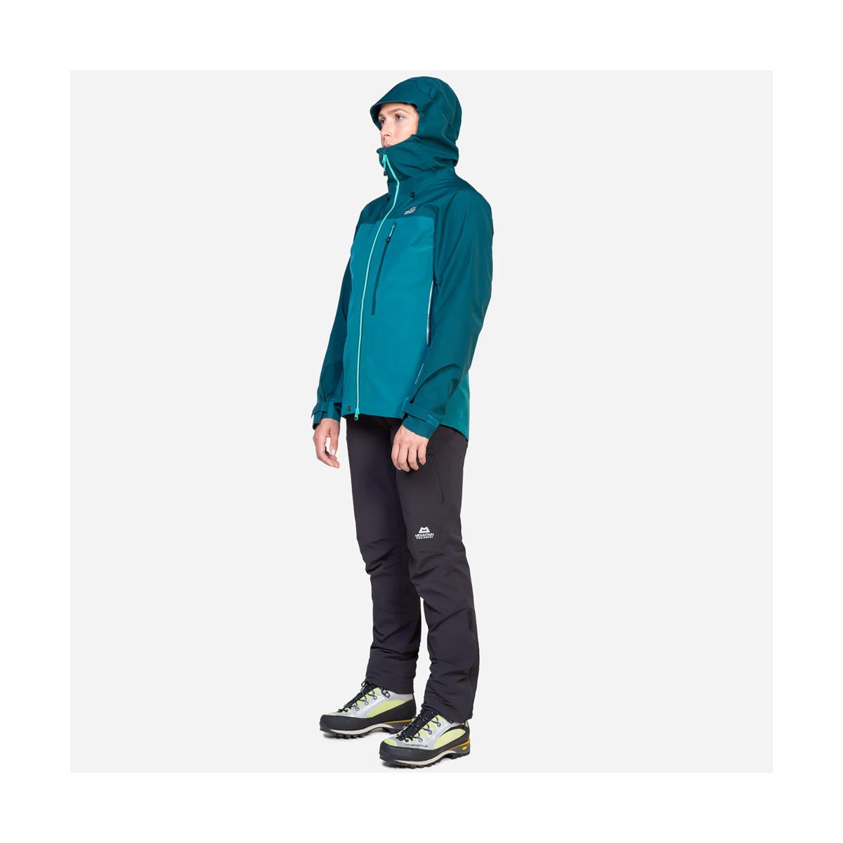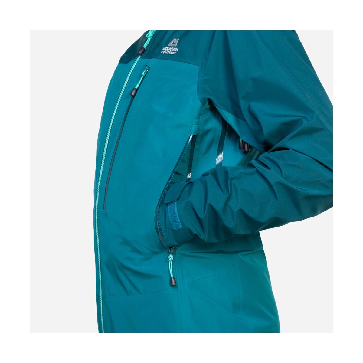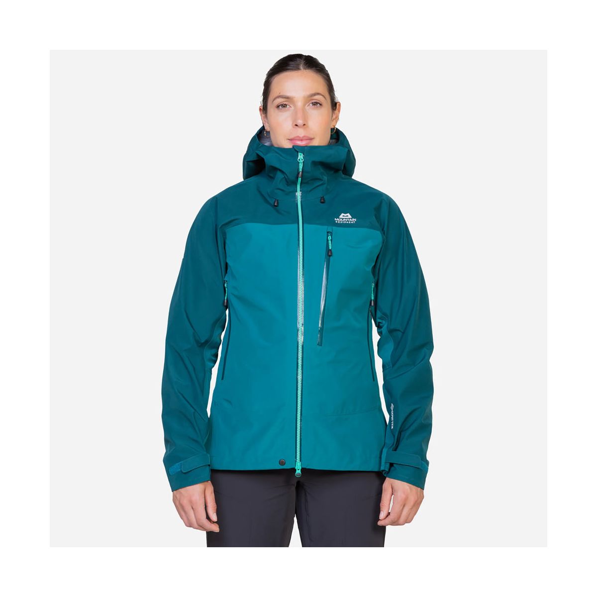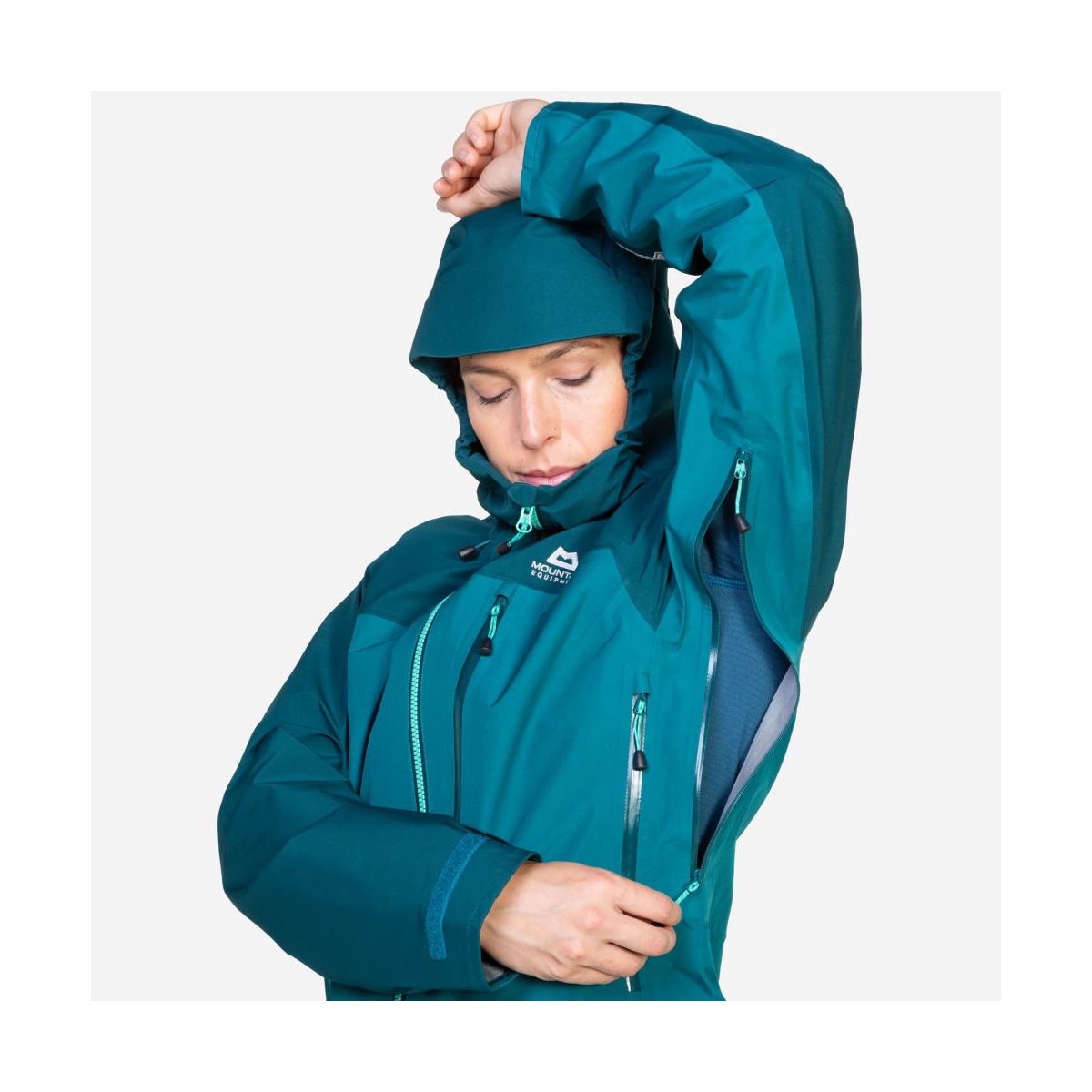 Nieprzemakalna, damska kurtka Mountain Equipment Makalu GORE-TEX 3L; idealna do uprawiania turystyki pieszej i górskiej, która łączy funkcjonalność, niską wagę i trwałość.