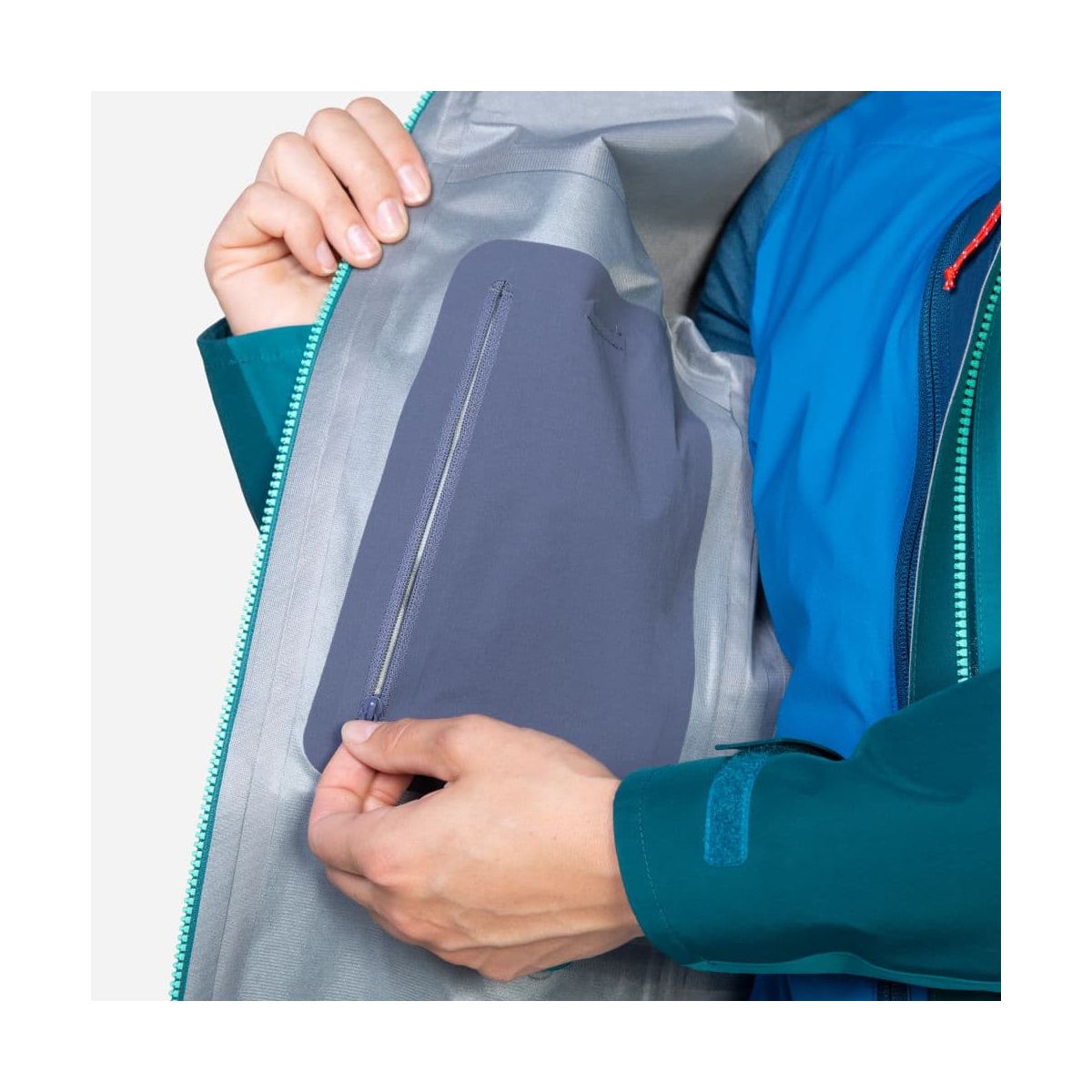Wykonana z membrany GORE-TEX® GORE-TEX® 50D i 75D, które przy rozsądnej wadze oferują pełną ochronę i bardzo dobrą oddychalność. Nieco lżejszy, bardziej giętki materiał 50D jest zastosowany w głównym korpusie kurtki, natomiast materiał 75D zapewnia zwiększoną wytrzymałość w newralgicznych miejscach (ramiona, górna część rękawów). Zastosowana hybrydowa konstrukcja zapewnia niską wagę, dobrą kompresję pakunku, a wszystko to bez starty parametrów ochronnych, wytrzymałości i wygody. Wszystkie szwy są w 100% podklejane.