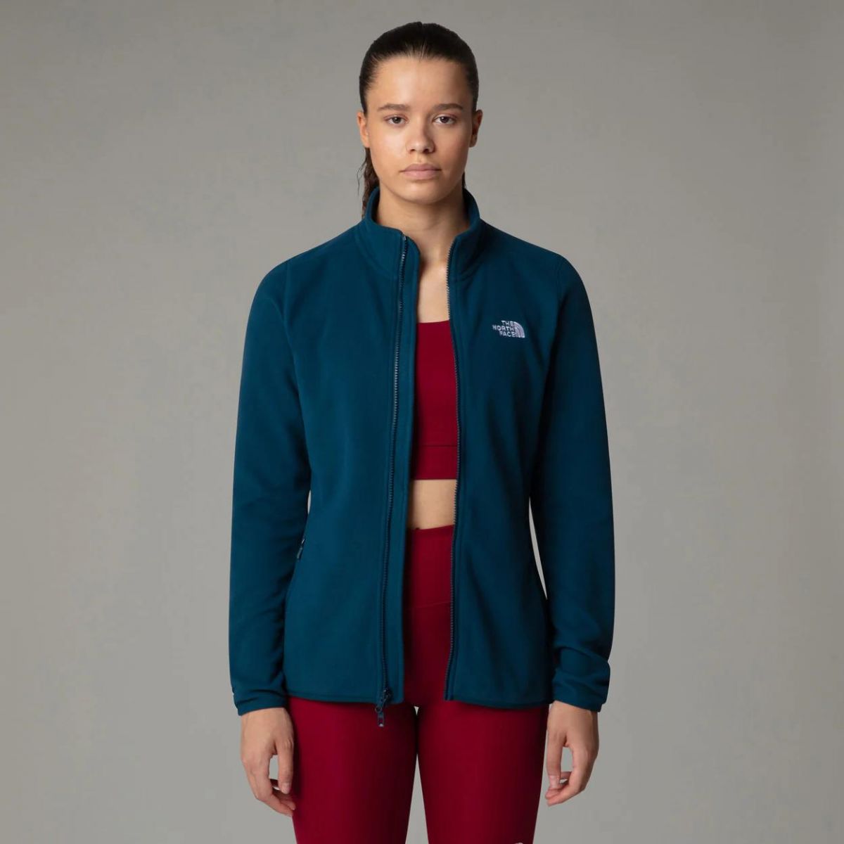 Damska kurtka polarowa The North Face Glacier 100 wykonana z poliestru pochodzącego z recyclingu. Kurtka z linii Circular Design - kolekcji stworzonej z myślą o ograniczaniu odpadów i zanieczyszczeń.