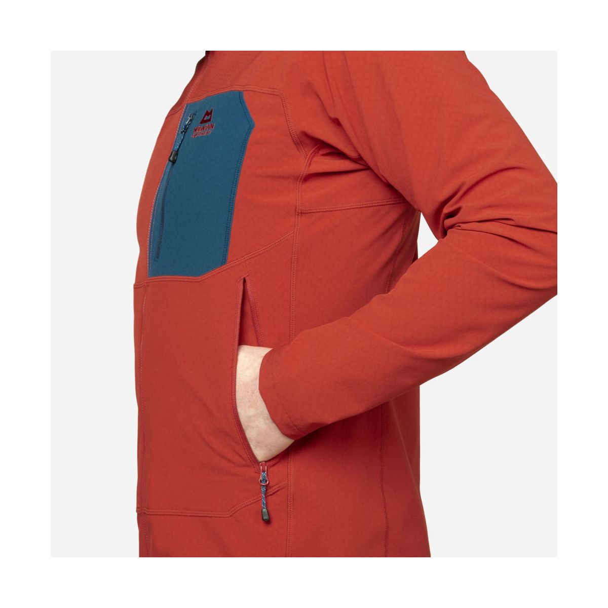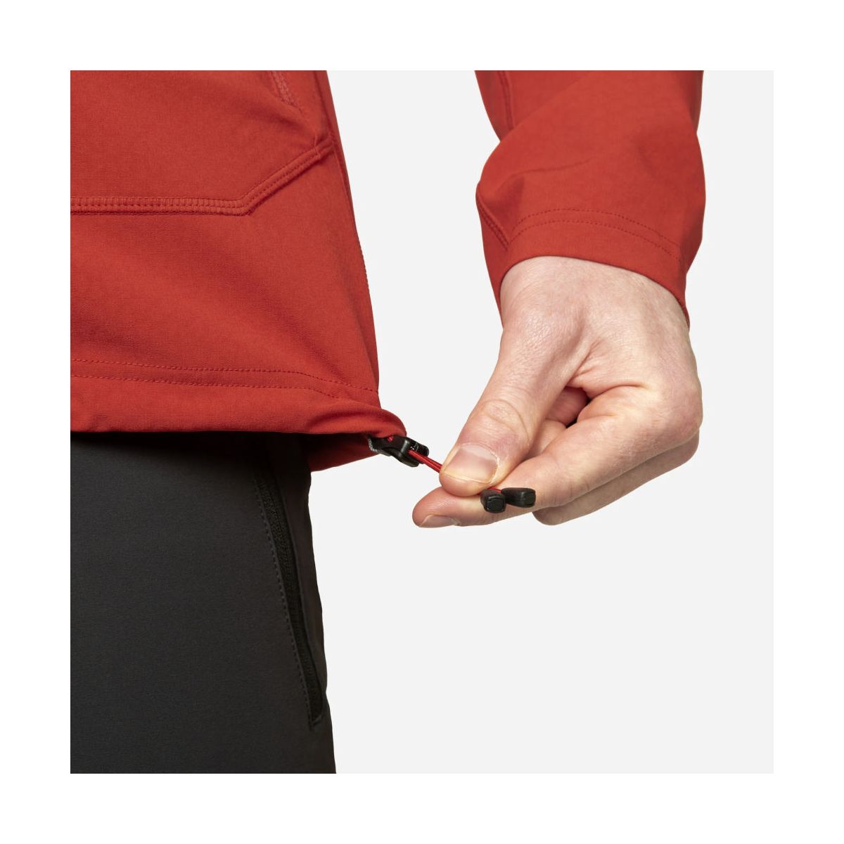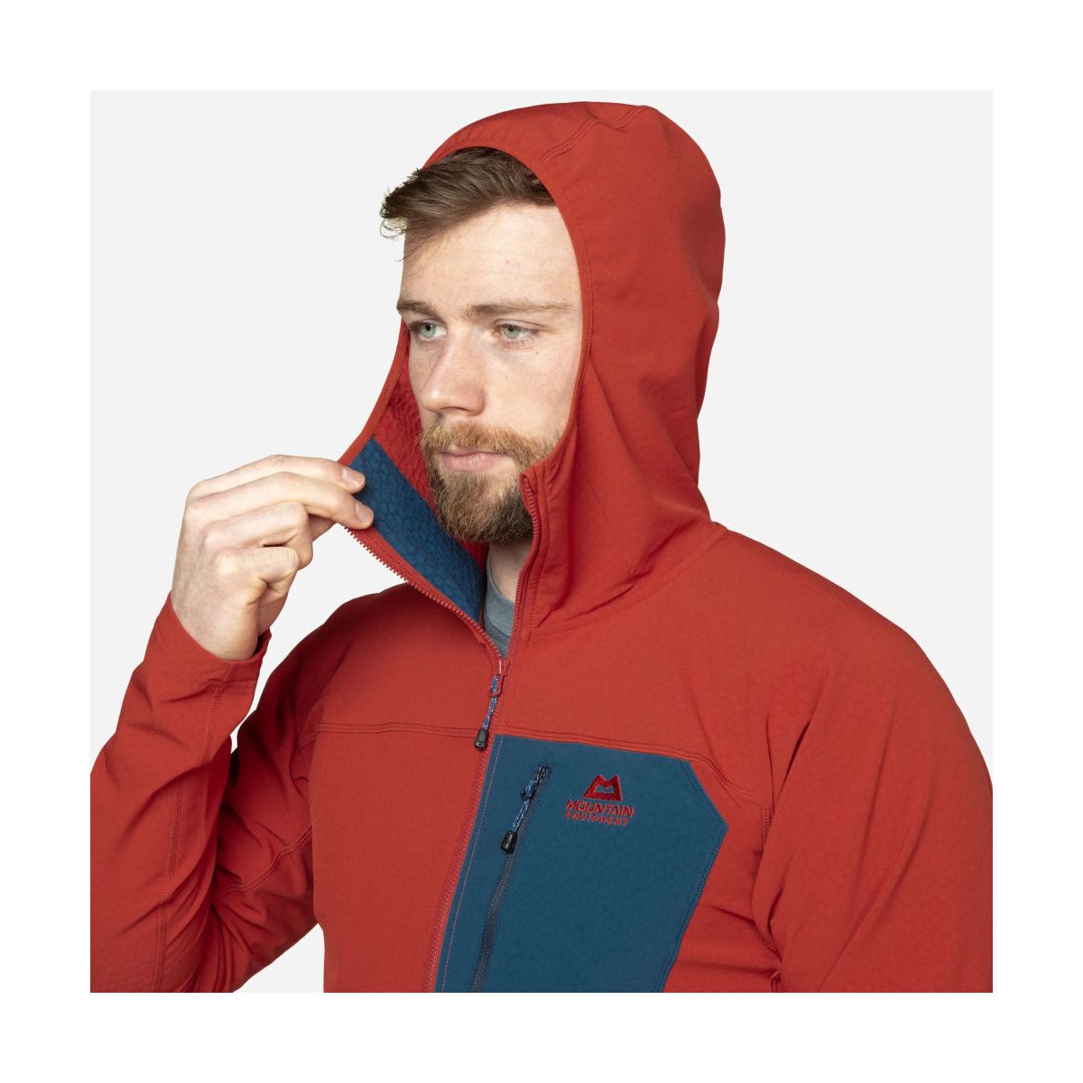 Dopasowany krój Active Fit został zaprojektowany tak, aby dobrze układał się pod uprzężą, eliminując zbędny nadmiar materiału. Regulowany kaptur Mountain Hood zapewnia dodatkową ochronę przed wiatrem w trudnych warunkach terenowych.