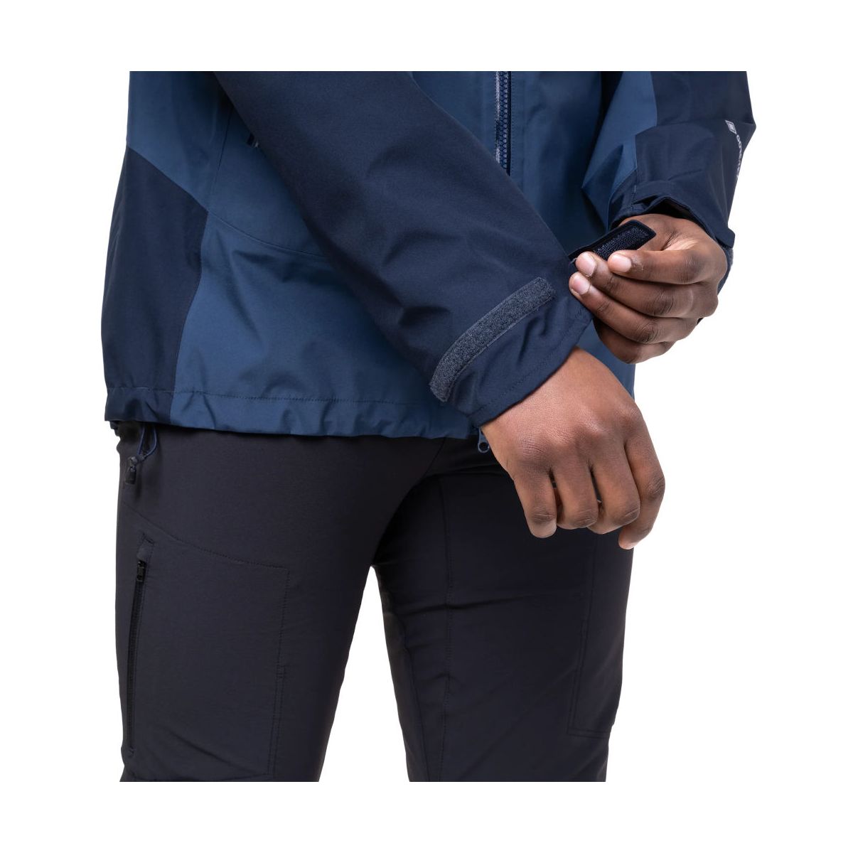 Dzięki dwukierunkowemu zamkowi YKK® AquaGuard®, podklejonym szwom oraz regulowanym mankietom i dolnym ściągaczom, kurtka skutecznie blokuje wodę i wiatr. Zamki wentylacyjne pod pachami zapewniają lepszą cyrkulację powietrza podczas intensywnego wysiłku. Dwie duże kieszenie na suwak są wygodnie rozmieszczone, by ułatwić dostęp nawet podczas noszenia plecaka.