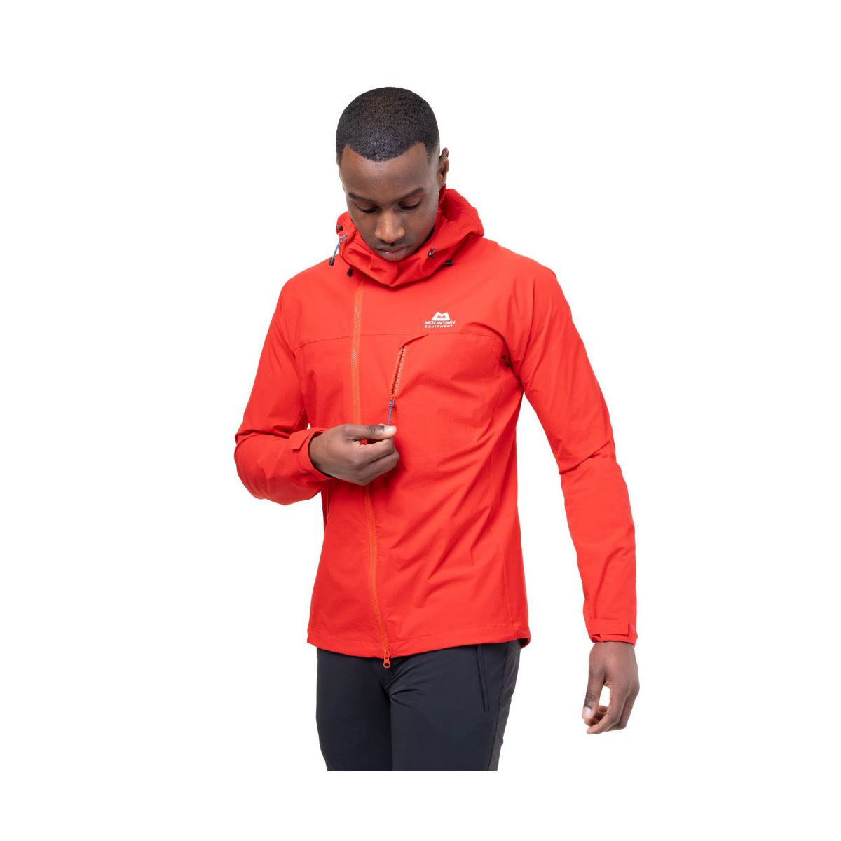 Kurtka posiada dopasowany, w pełni regulowany, kompatybilnemu z kaskiem kaptur Mountain HC, przegubowe, profilowane rękawy oraz kieszeń piersiową. Dwukierunkowy zamek błyskawiczny YKK® jest wszytko lekko asymetrycznie z przesunięciem na prawo.