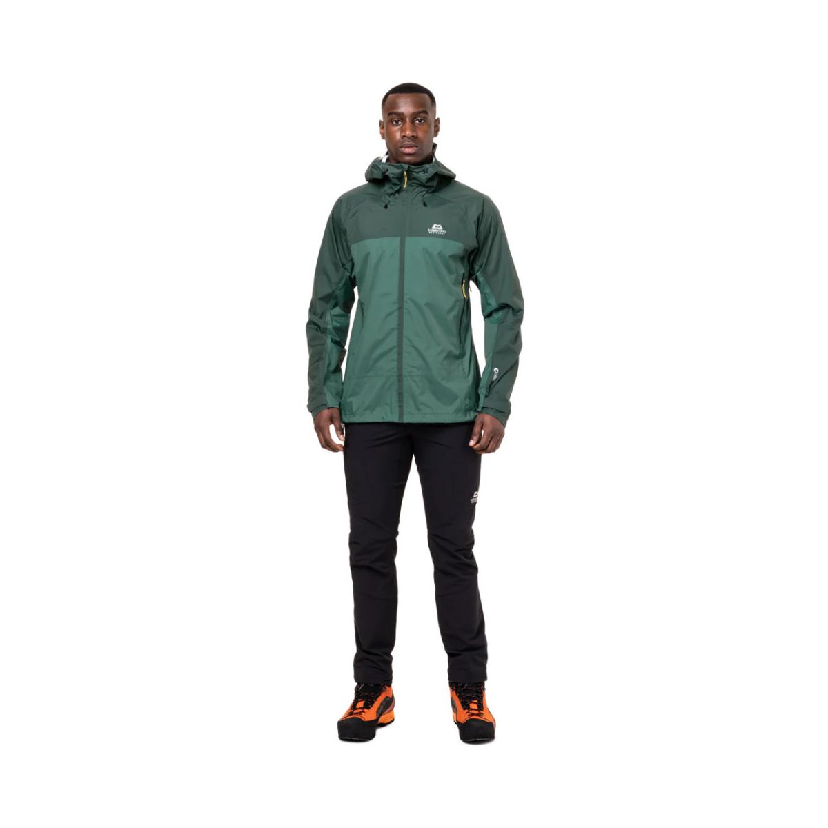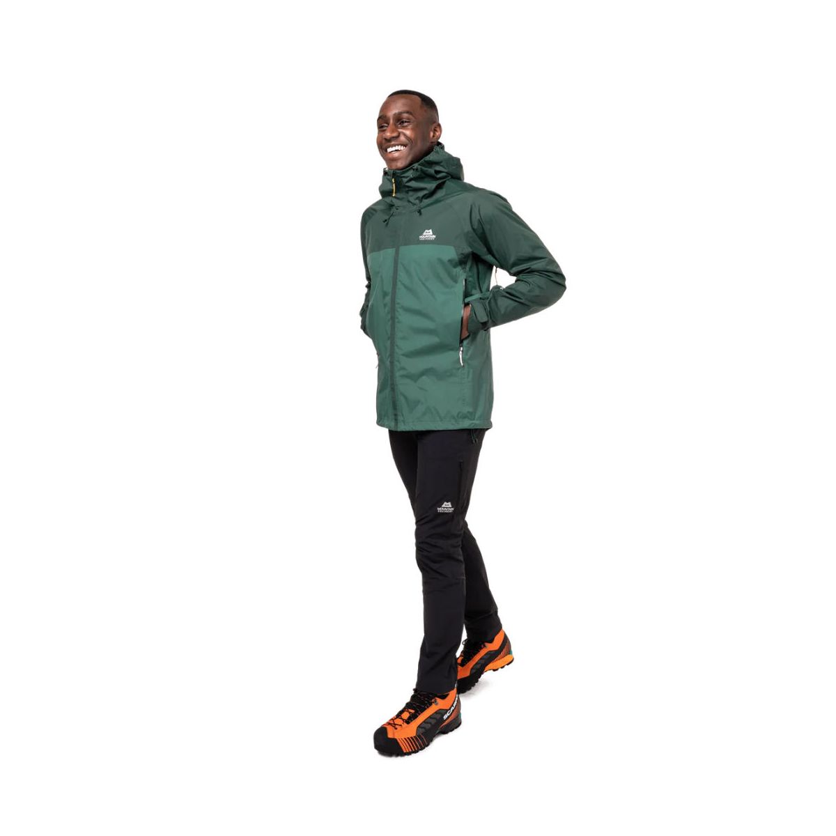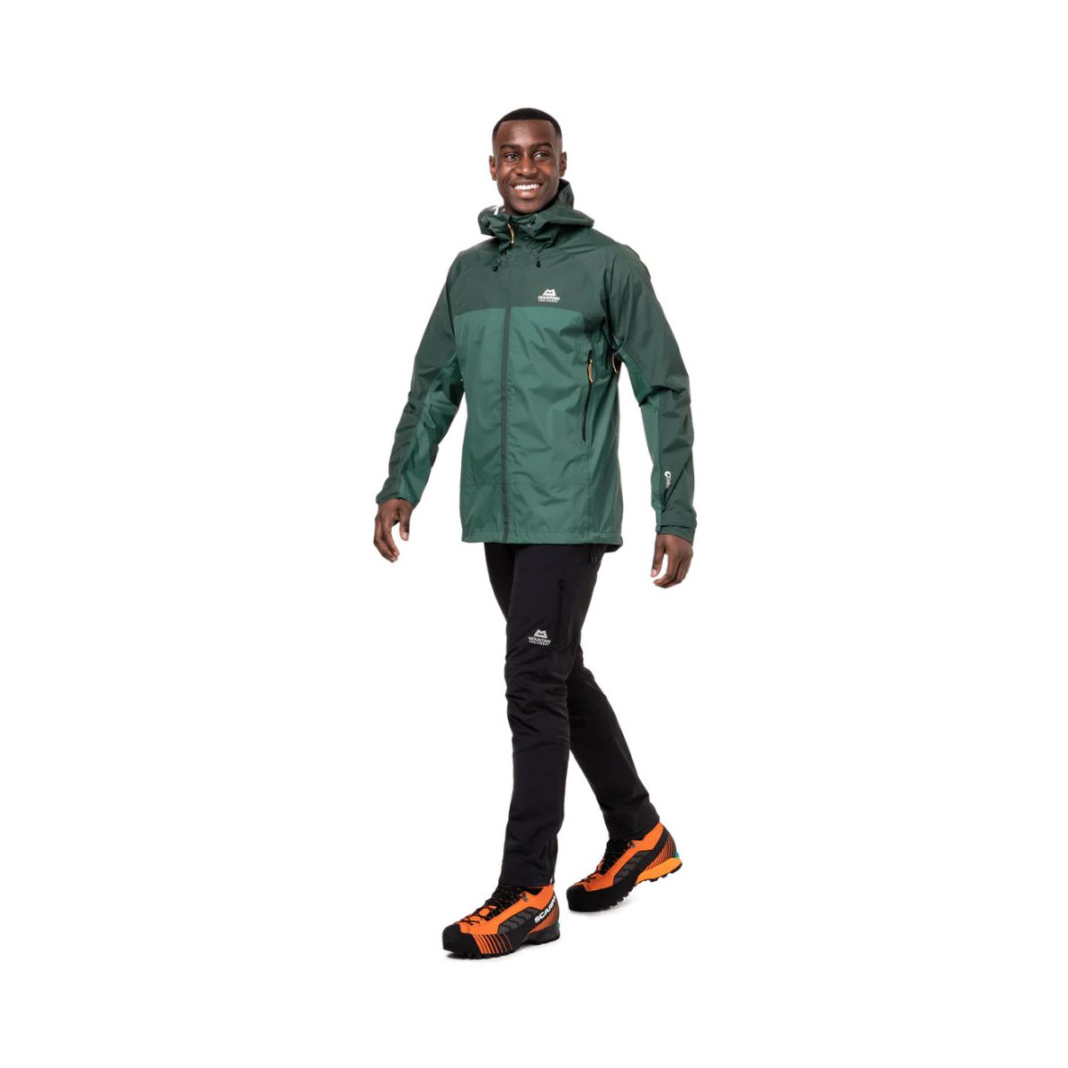 Pełni regulowany kaptur Mountain Hood, laminowane mankiety i dwustopniowa regulacja dołu gwarantują skuteczną ochronę przed wiatrem i wilgocią. Boczne kieszenie oraz ukryte zamki wentylacyjne pod pachami pozwalają na kontrolę temperatury i odprowadzanie nadmiaru wilgoci podczas intensywnego ruchu.