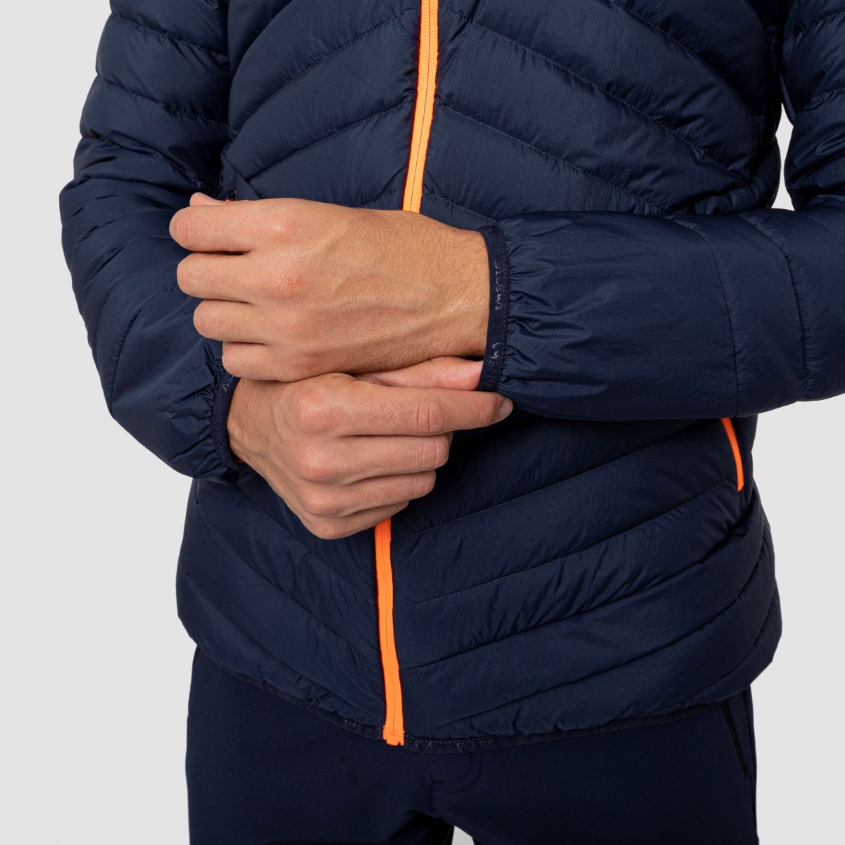 Lekki, a zarazem niezwykle wytrzymały, nylonowy materiał wierzchni z impregnacją DWR, skrywa pod sobą wysokiej jakości wypełnienie puchowe 550 cuin 80/20. Od wewnątrz ocieplinę zabezpiecza podszewka z tafty, która zapobiega wychodzeniu puchu, a przy tym jest jedwabiście miękka w dotyku.