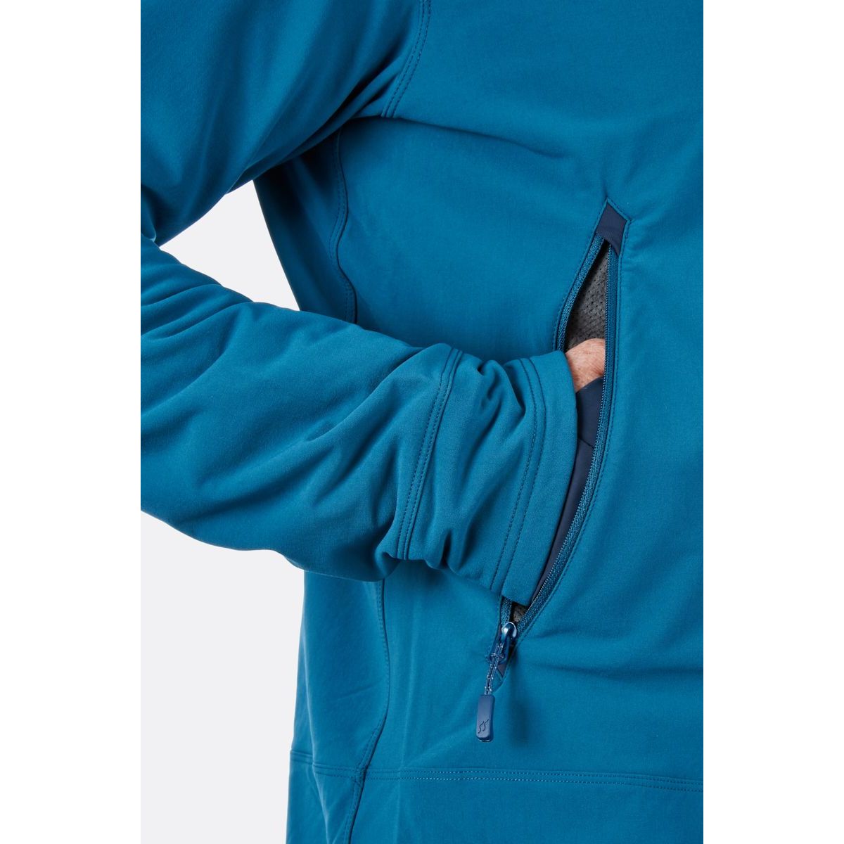 Dwie przednie kieszenie zaprojektowano tak by zapewnić wygodę korzystania z nich - nie kolidują one z uprzężą ani plackiem. Dopasowany, elastyczny kaptur z powodzeniem zmieści się pod kaskiem. Elastyczne mankiety skutecznie chronią przed utratą ciepła.