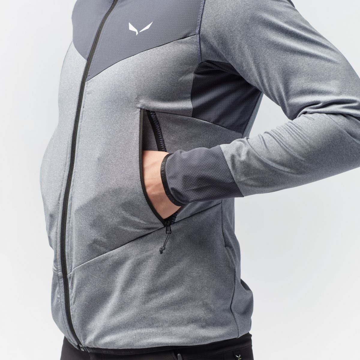 Funkcjonalna, męska kurtka Salewa Agner Hybrid PL / DST Full-Zip Hoody zaprojektowana do letniego trekkingu i wspinaczki górskiej.