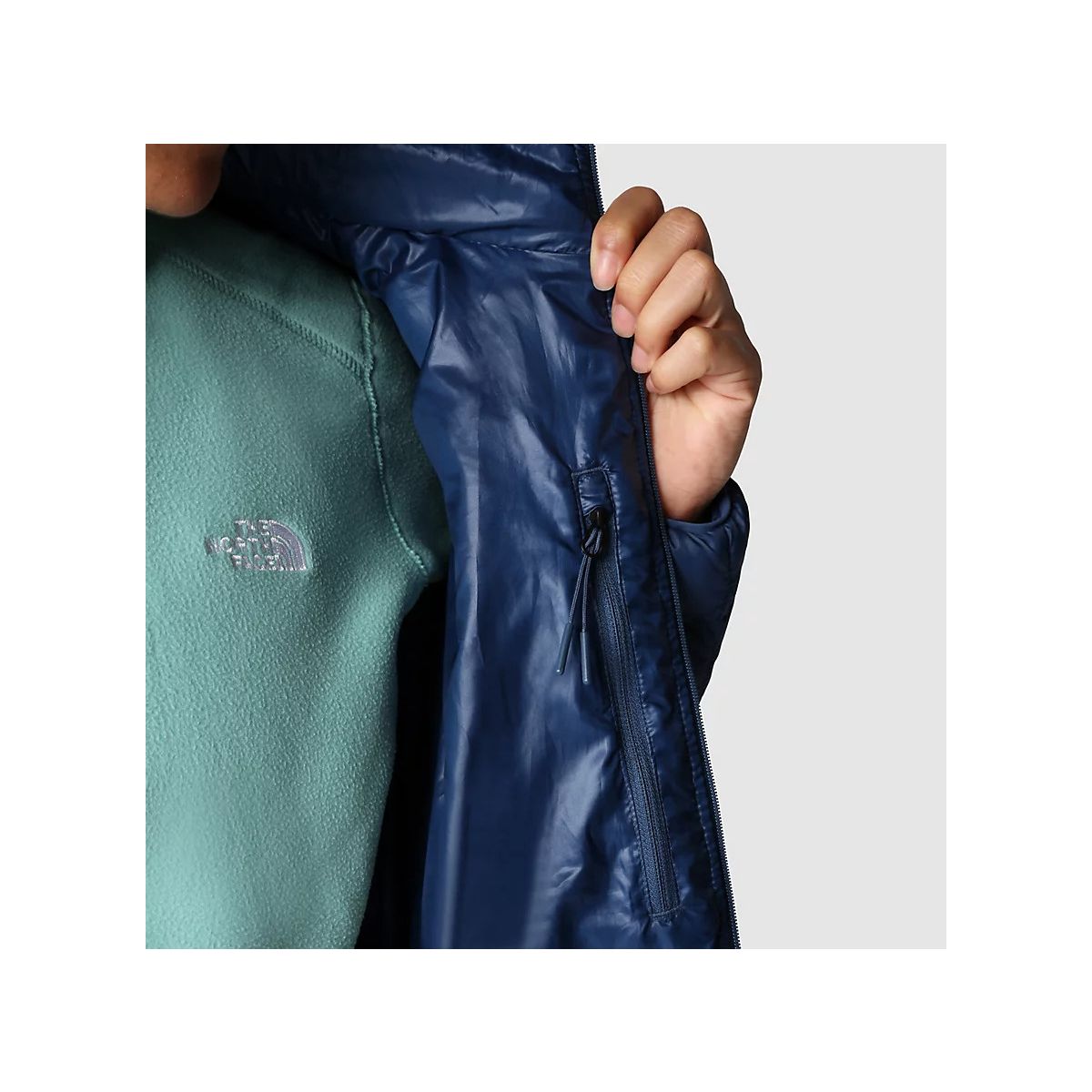 Thermoball Eco wyposażona jest w dwie, boczne kieszenie zapinane na zamek, wewnętrzną kieszeń piersiową, która przekształca się w woreczek do spakowania kurtki.