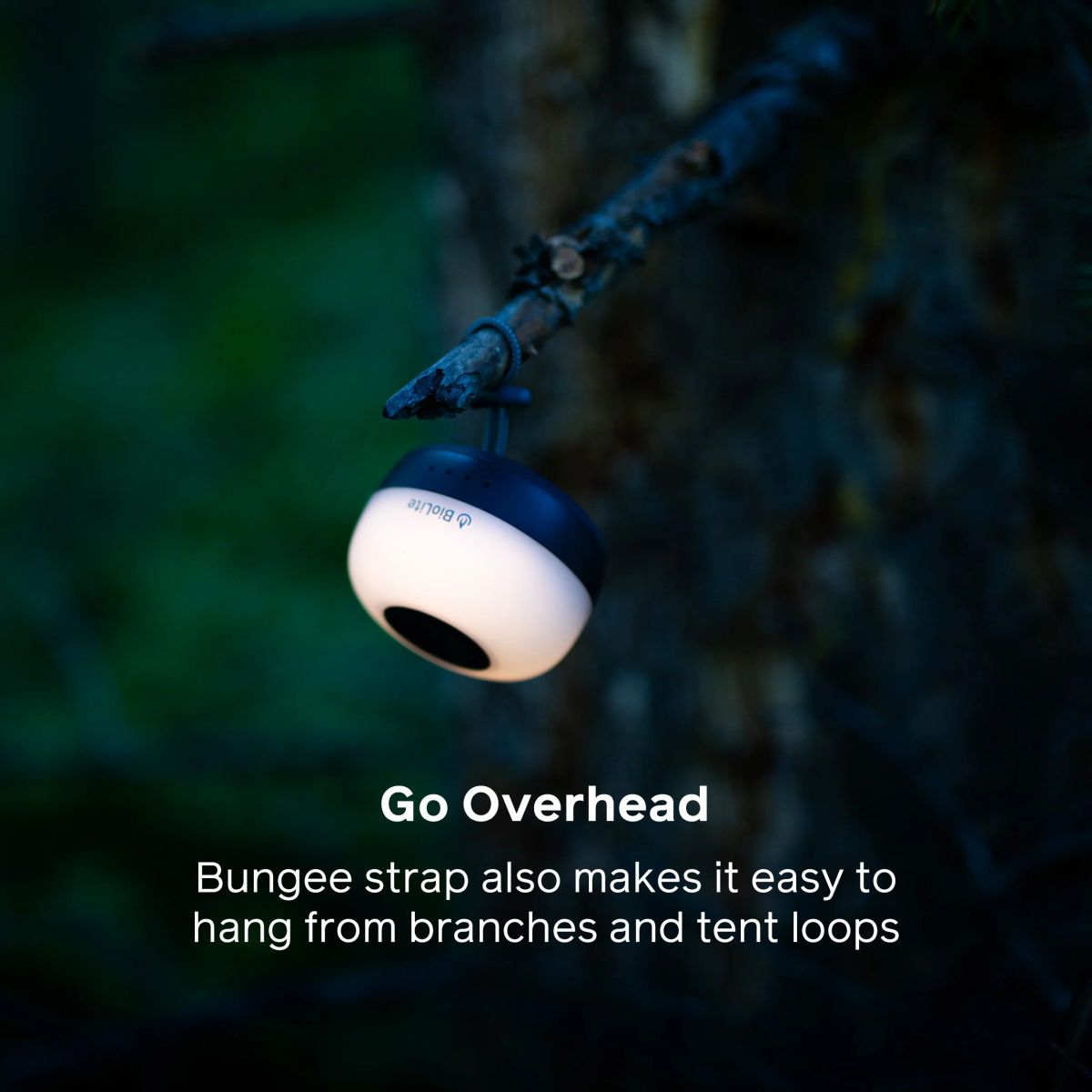 Poręczna, lekka, uniwersalna i praktyczna lampka Biolite AlpenGlow Mini, ładowana przez USB z kontaktu lub panelu słonecznego. Świeci światłem białym i kolorowym. Można ją powiesić lub postawić. Maksymalna siła światła to 150 lumenów.