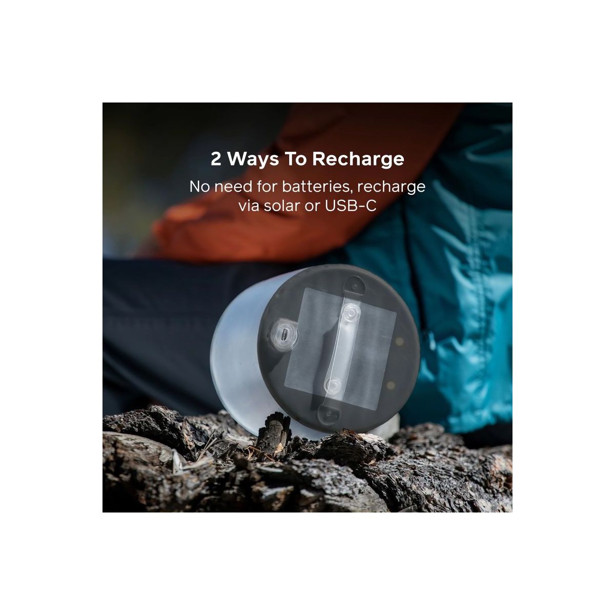BIOLITE LUCI CHARGE 360 to nowoczesna, nadmuchiwana lampka solarna LED z funkcją power banku. Zaprojektowana z myślą o podróżnikach i użytkownikach outdoorowych—świetnie sprawdza się podczas biwaków, w ogrodzie lub jako awaryjne oświetlenie. Matowe wykończenie i dyfuzor gwarantują przyjemne, ciepłe światło o mocy do 360 lm, a akumulator 4000 mAh pozwala ładować urządzenia USB‑powered.