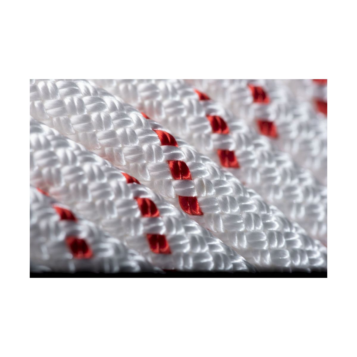 - Statyczna wytrzymałość na zerwanie ok. 2500 kg; z węzłem ósemka ok. 1800 kg.